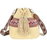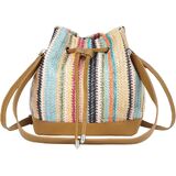Women Bucket Drawstring Handbag Straw Weave Beach Purse Fashion Shoulder Bag Small Top Handle Satchel
