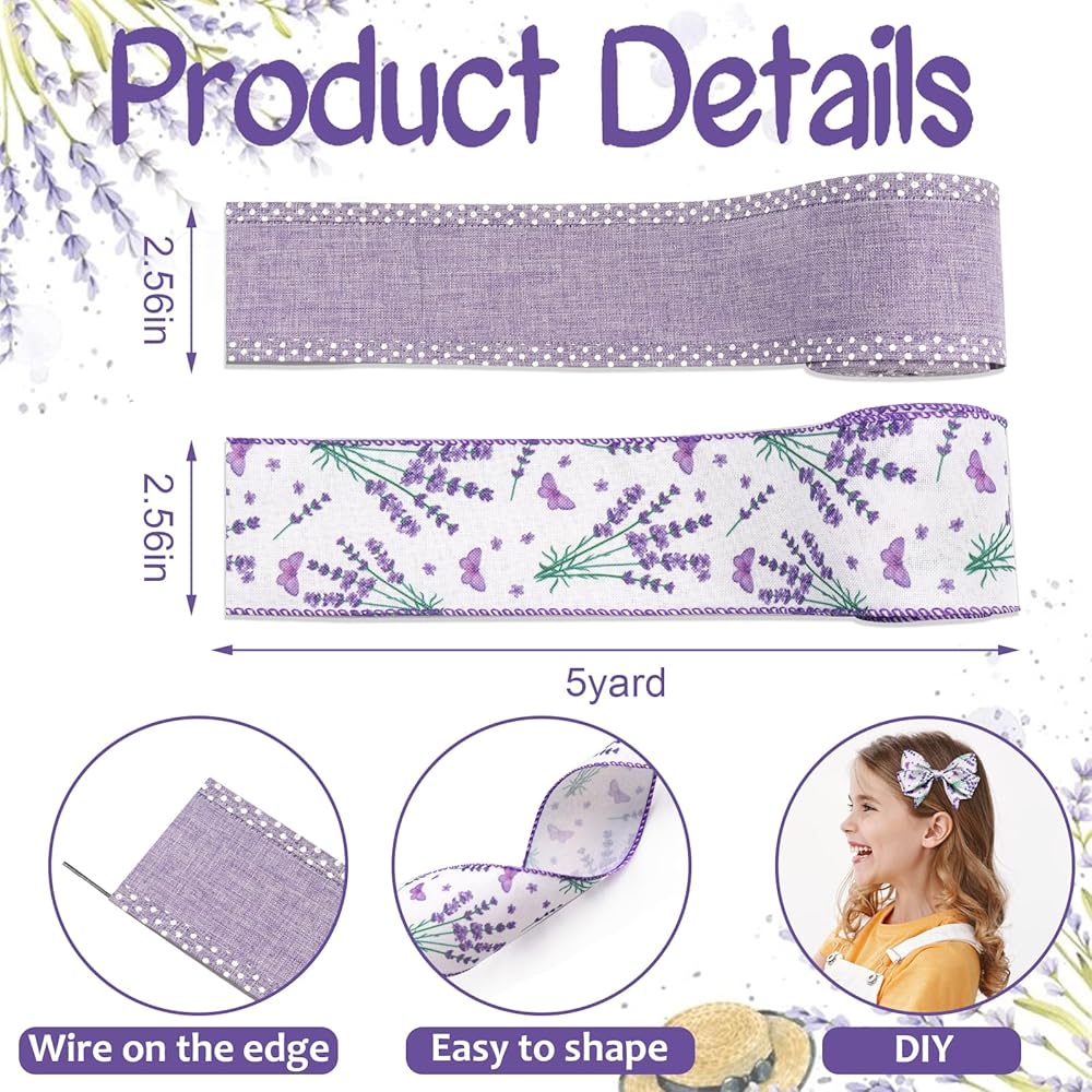Size and quantity: you will get 2 rolls spring ribbons(1 piece purple lavender ribbon,1 piece purple white buffalo plaid ribbon), each flower decorative ribbon measures approx. 2.5 inches in width approx. 5 yards in length, so you will get a total 10 yards wired edge ribbons, long enough to satisfy your decorative needs and gift wrapping purposes.
