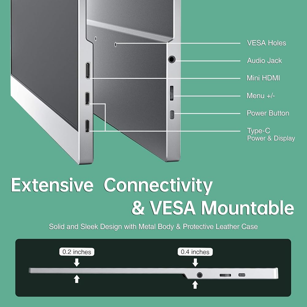 【Wide Connection and Smart Stand】With dual USB Type-C and mini HDMI ports, Cocopar monitor is compatible for laptops, PCs, PS4/PS5, XBOX, Nintendo Switch, Raspberry Pi. The magnetic leather cover provides full protection for the entire monitor and it also works as a stand for multiple viewing angles.