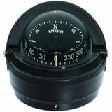 Voyager compass, MFG# S-87, surface mount, black housing, 3" combi direct/top reading black dial, moveable sun shield, green illumination, compensators, 4.5" diameter, 3.3" high, 5 year warranty.