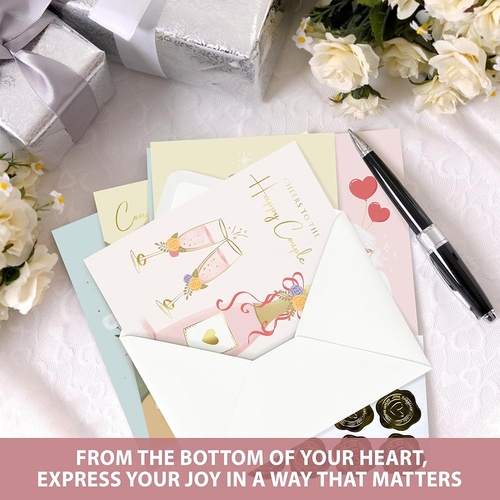 • Wedding Gift Card: Collection of 10 gold foil wedding card invitations, each with a distinct design that speaks of love, joy and eternal commitment. From the elegance of traditional motifs to the fresh vibrancy of modern art. Polite, luxurious and sophisticated for wedding parties, engagement ceremonies, newlyweds, and wedding congratulations, etc.