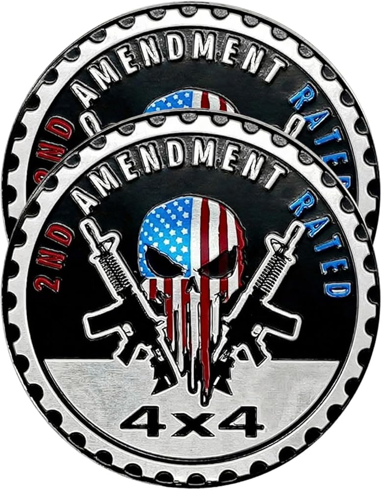2 PCS Car Emblem, 4 x 4 Metal Automotive Badge, 3D Round Metal Car Badges Emblems, Car Badge Decals Stickers Compatible with Jeep Wrangler Vehicles Trucks SUV RV (2NG Amendment)
