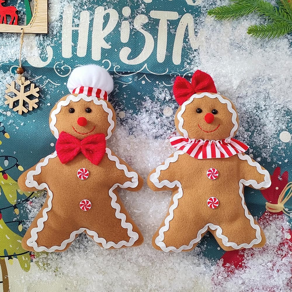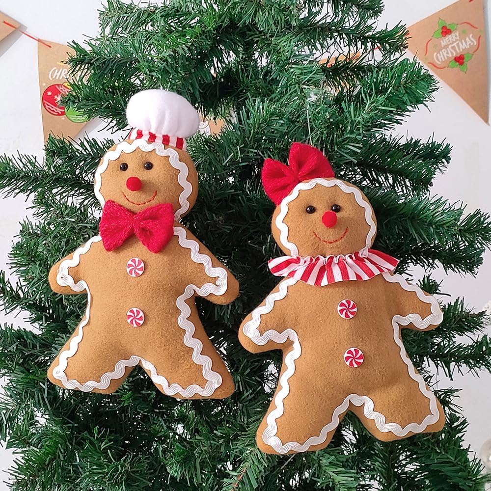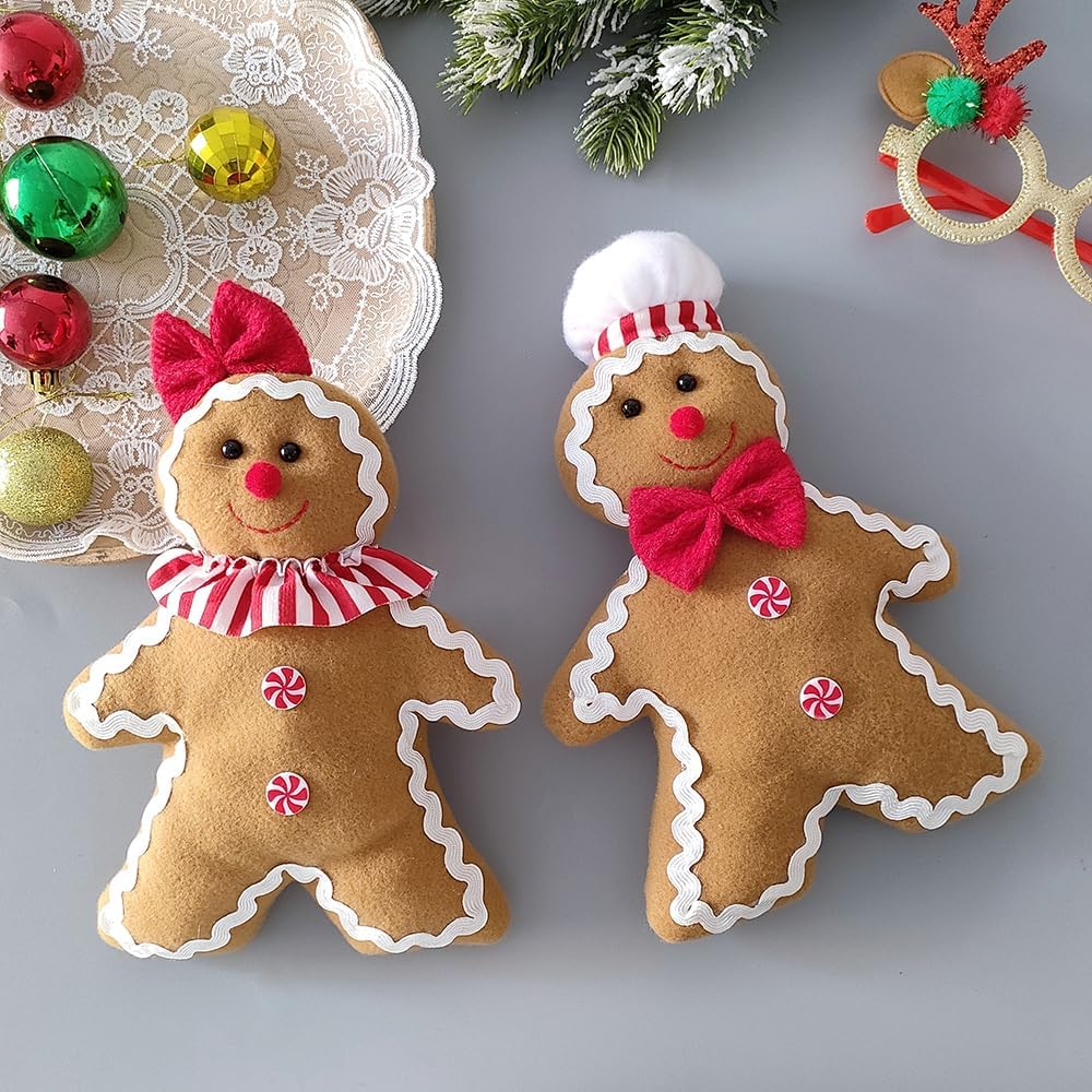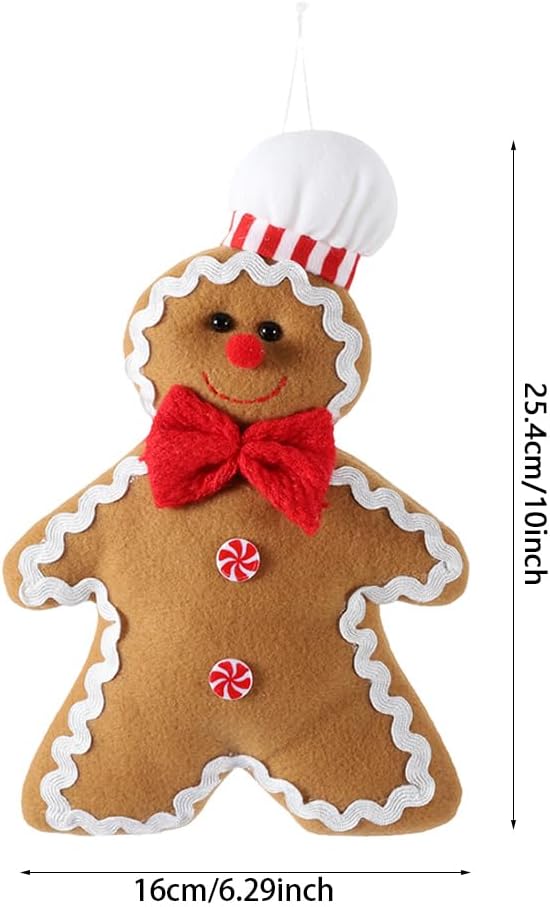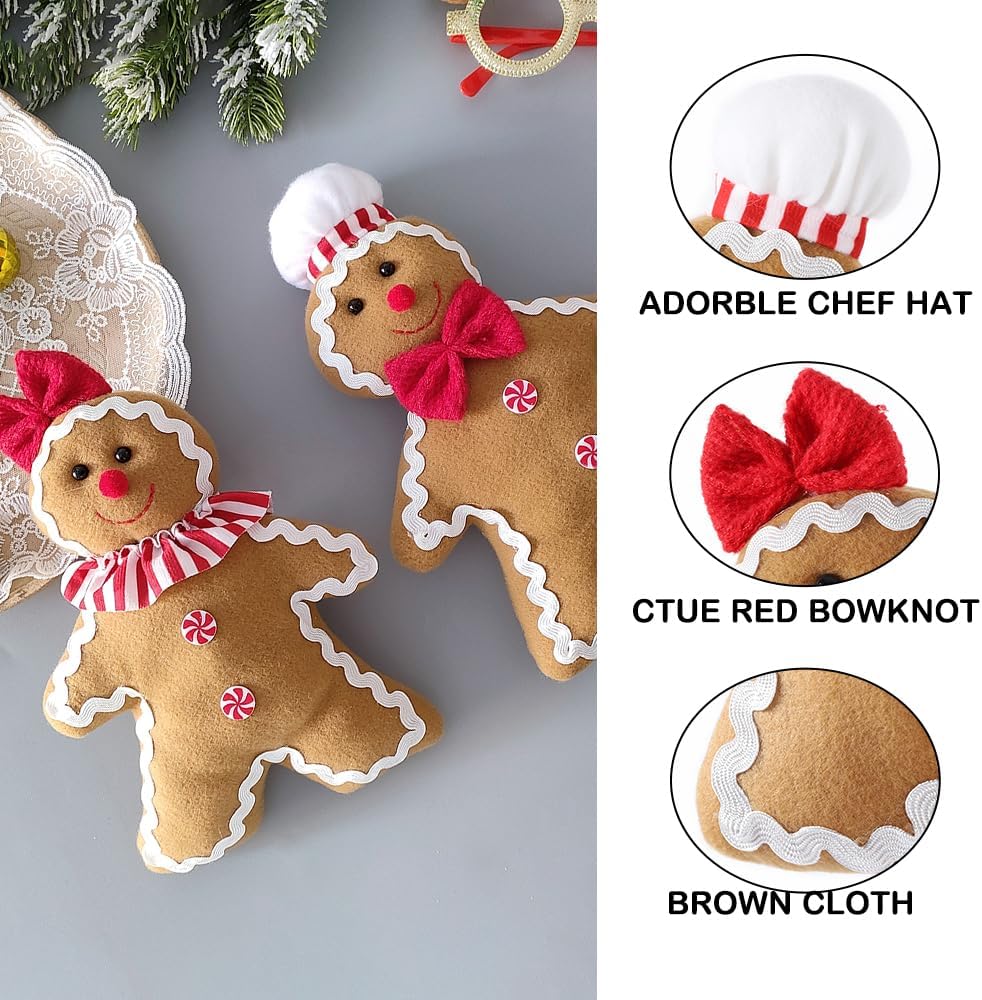 BALONAR 10Inch Large Size Christmas Plush Gingerbread Man Boy Girl Figures with Chef Hat Bowknot Christmas Ornament HOM Decorations Doll Soft Door Window Table Tree Holiday Xmas Season Decor