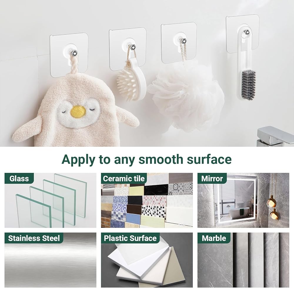 Efficient adhesive hooks:These sticky hooks work on various surfaces, including wood, ceramic tiles, marble, glass, metal, and plastic. Ideal for hanging towels and shower brushes in the bathroom, keeping kitchenware organized in the kitchen, and serving as handy storage hooks in the office.