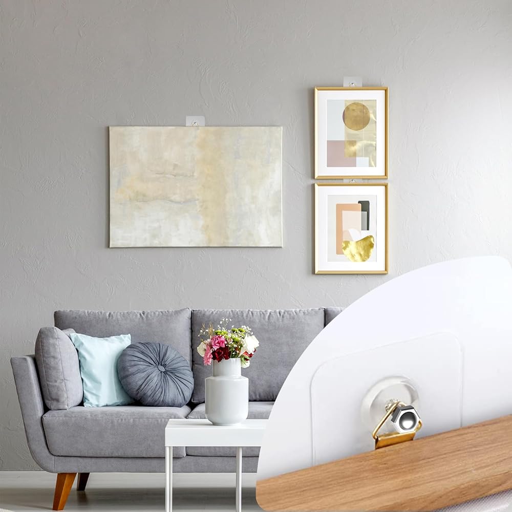 Well Concealed Picture Frame Hanger: These heavy duty picture hangers include a see-through cover that effortlessly matches the wall, making the wall hook under the frame almost invisible. This clever concealment ensures that the hook marks remain hidden, maintaining the overall beauty of your decoration.