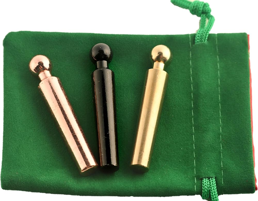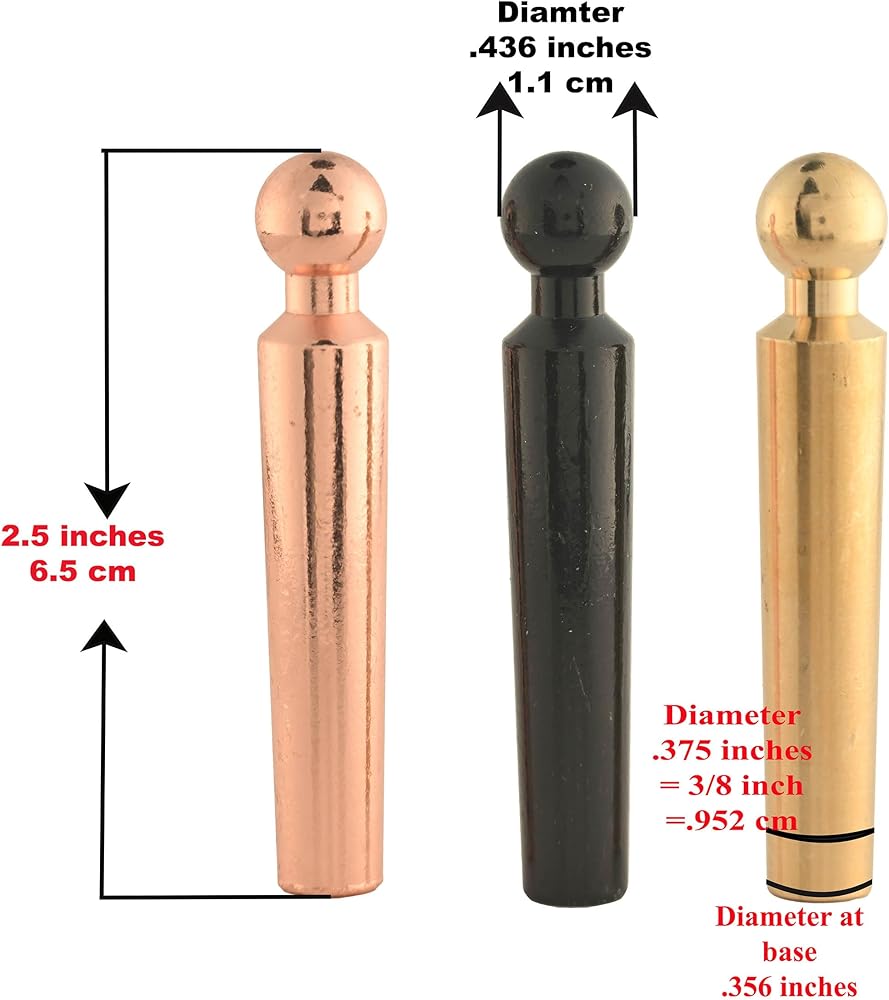 Cribbage Pegs Super Extra Jumbo (for 3/8” holes). Ball Top. 2.5 inch tall. Set of 12 pegs in 3 Colors (4 each in Black, Copper and Brass). Black and Copper are steel plated. For specialized, usually home made Cribbage Boards.
