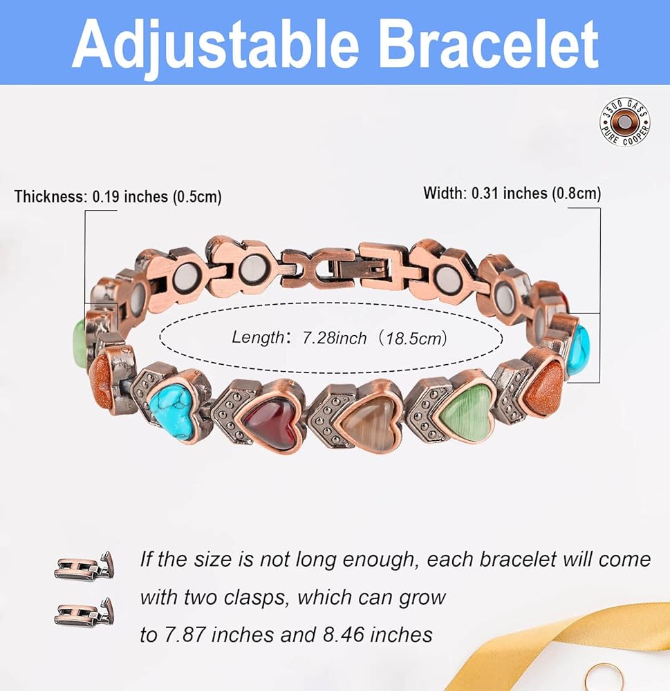 🤎【 Magnetic Bracelet】The copper bracelets for arthritis is embedded with strong magnets (3500 Gauss). The magnets help for reducing target pain in your wrist, hand, knuckle, and joints in your thumb, which is good for reducing fatigue & muscle tension, reducing static electricity, for promotes relaxation and balanced sleep.