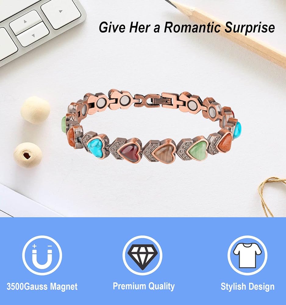 🤎【Perfect Gift】 Fashion health turquoise copper bracelet for women, Ideal gift for mom, wife, grandma, family, friends during Mother's Day, Birthday, Anniversary, etc. We Offer 60 days' MONEY BACK or Exchange if you're not satisfied.