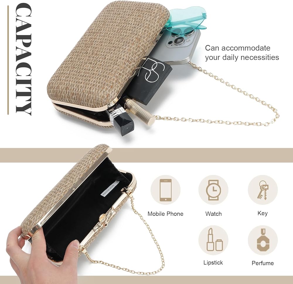 [Occasion]: A perfect evening bag for wedding, party, prom, cocktail, banquet, night out, travel, beach activities, can be paired with various clothes
