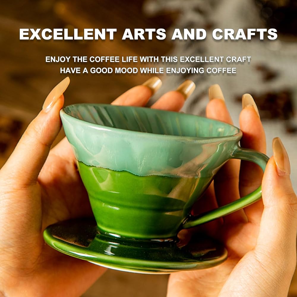 Ceramic Pour Over Coffee Dripper 01 Ceramic Coffee Maker with 1 Hole,Hand Drip Cone Coffee Filter,Easy Brewing,for 1-2 People (Green)