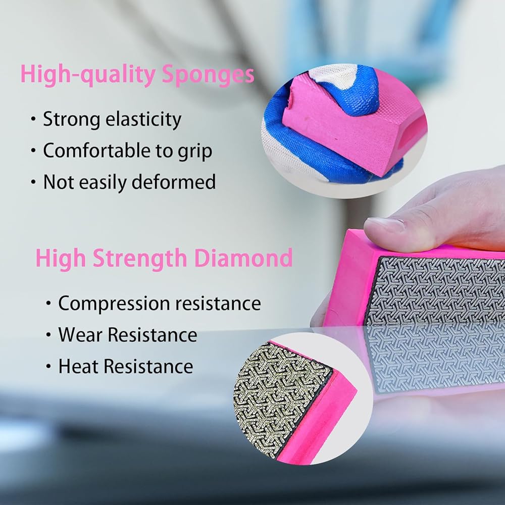 👍الاستخدام الرطب والجاف: يمكن استخدام كتل الرمل الماسية مباشرة للتلميع الرطب والجاف لأسطح الأشياء. يتميز الجزء الخلفي من الرغوة بوظيفة تخزين المياه، والتي يمكن أن تقلل من التنظيف وتحسن كفاءة العمل.