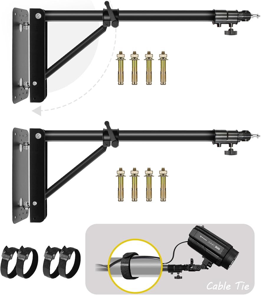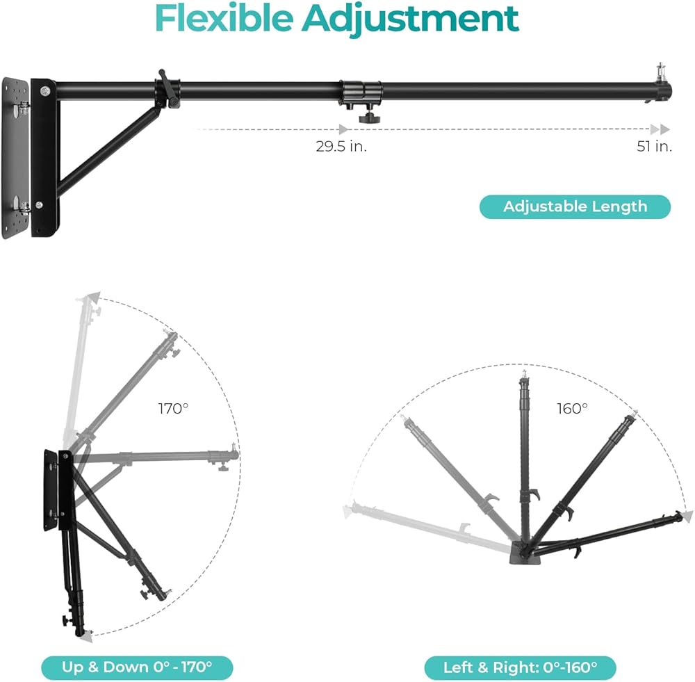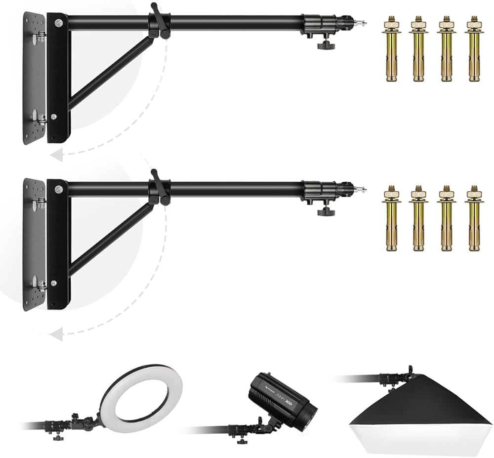 Julius Studio Triangle Boom Arm Wall Ceiling Mount, 180 Degree Rotation Angle Adjustable for Ring Light, Photo Studio Flash Strobe, Monolight, Softbox, Reflector, Umbrella, Flexible Mounting, JSAG862
