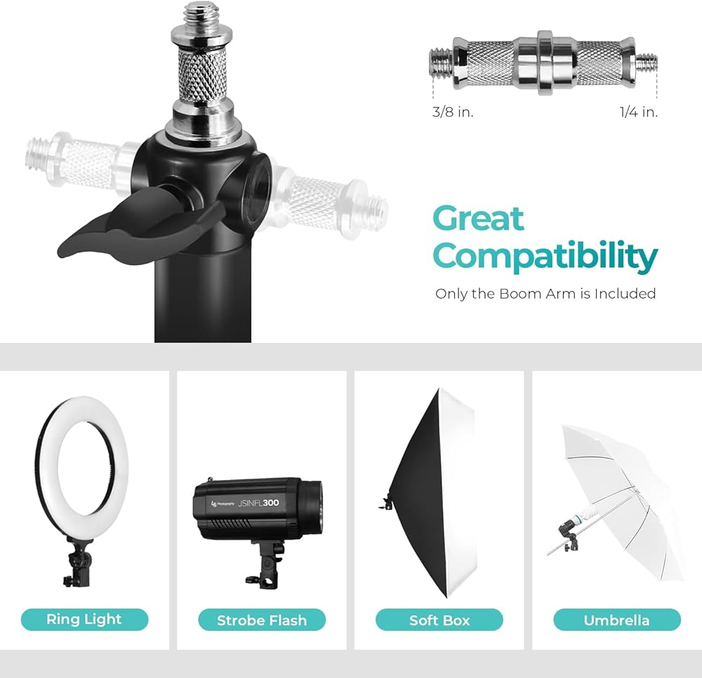 ▶️ 【Wide Compatibility】 Standard 1/4" and 3/8" double-ended spigot to support photo lighting equipment like flash strobes, monolights, ring lights, softboxes, umbrellas, reflectors, and even cameras and mics