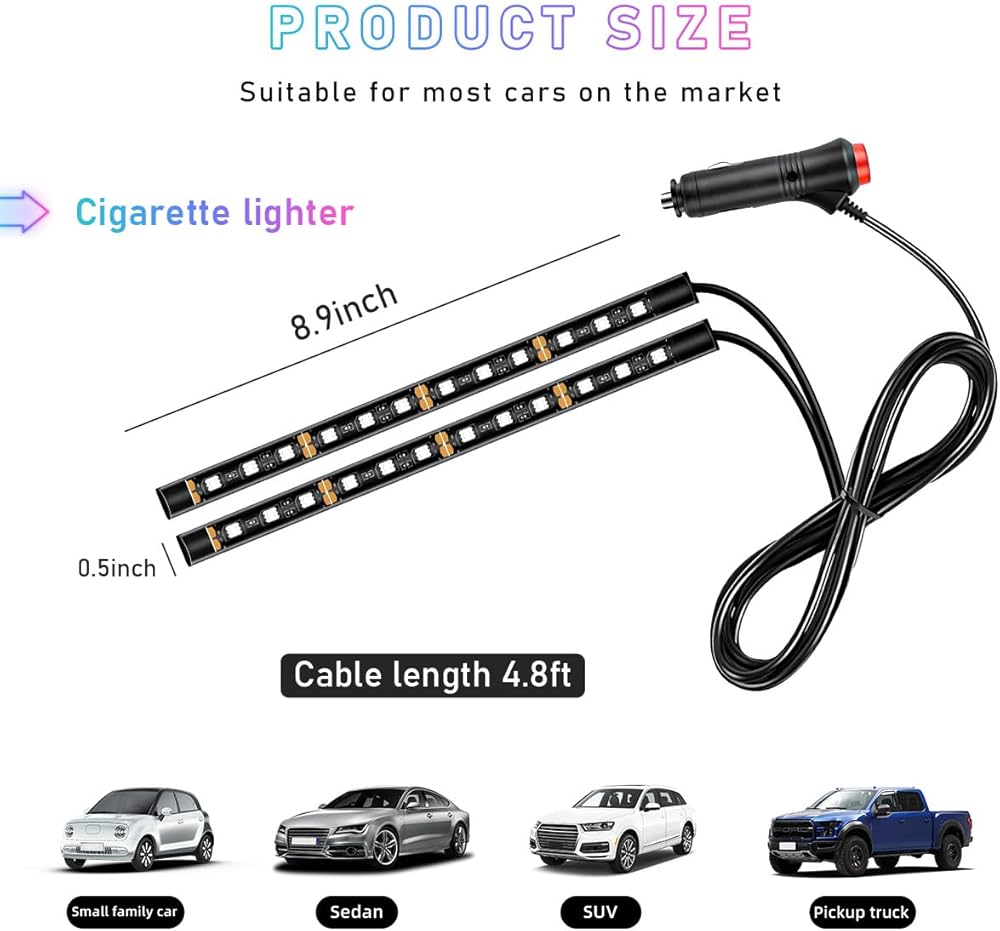 【Two Styles】: You can choose the cigarette lighter style, which comes with an on/off switch so you can turn it on and off at any time. And the USB style is plug and play, saving time and effort. They come with 4 light strips and 48 LED beads, which are bright enough to help you find items easily in the dark.
