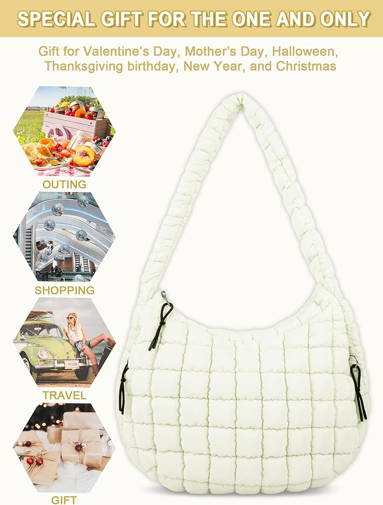 【Perfect Gift】The quilted puffer tote bag is ultimate gift for birthdays, anniversaries, Valentine's Day, Christmas, and other special occasions. Surprise your loved ones, friends, and family with this stylish and functional bag. It's a gift they'll cherish for years to come.