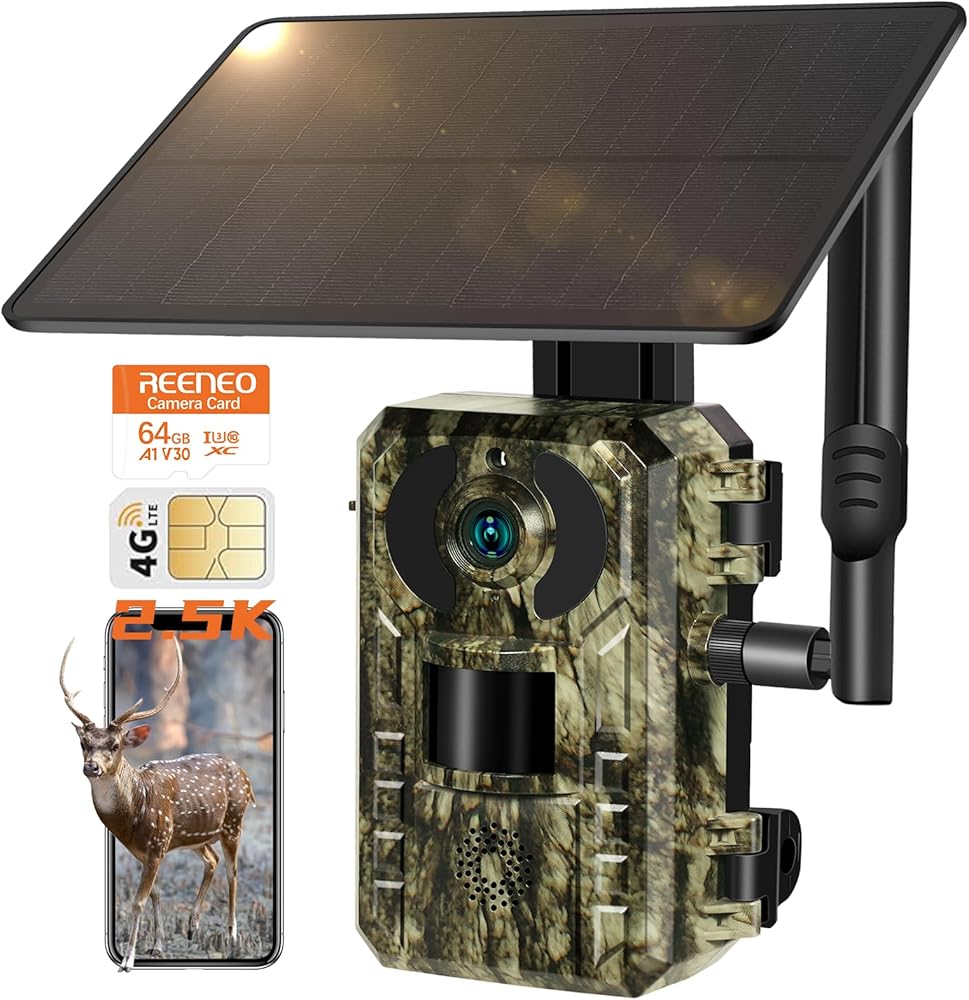 4G LTE 2.5K Live Feed Cellular Trail Camera, Game Trail Cameras That Send Pictures to Cell Phone with Night Vision Motion Activated IP66 Waterproof, 0.2S Trigger Time with SIM&64GB SD Card