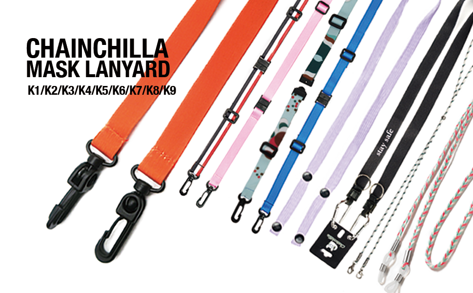 OPTIMAL SOLUTION: With ChainChilla's lanyard for face mask, you can wear your face masks more conveniently in the most stylish way! The straps are also versatile and can be used with different types of Masks. Our mask chain is not just your ordinary strap, it is a stylish mask lanyard made with synthetic fabric that does not irritate your skin. The Mix set with 5pcs come with 5 different colored face mask lanyards.