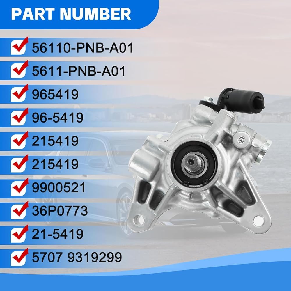 Power Steering Pump Fits for Honda 2006-2007 Accord 2.4L,for 2002-2011 CRV 2.4L,for 2006-2011 Element 2.4L,for 2002-2006 RSX 2.0L,for 2006-2008 TSX,Replace OE 21-5419 96-5419 56110PNBA01