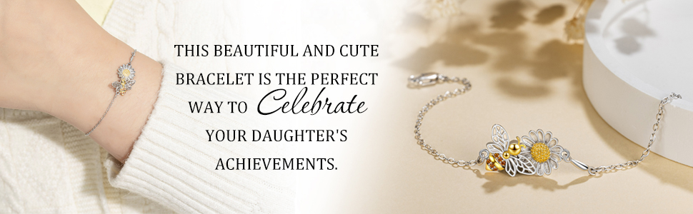 To My Daughter Bracelet: This beautiful and cute bracelet is the perfect way to celebrate your daughter's achievements. The tiny bee and daisy design symbolizes beauty, kindness and hard work and, making it a meaningful gift for your daughter. When she wears this bracelet, she will have a reminder that your love and inspirational is forever. This is the perfect gift for daughter from mom or dad.