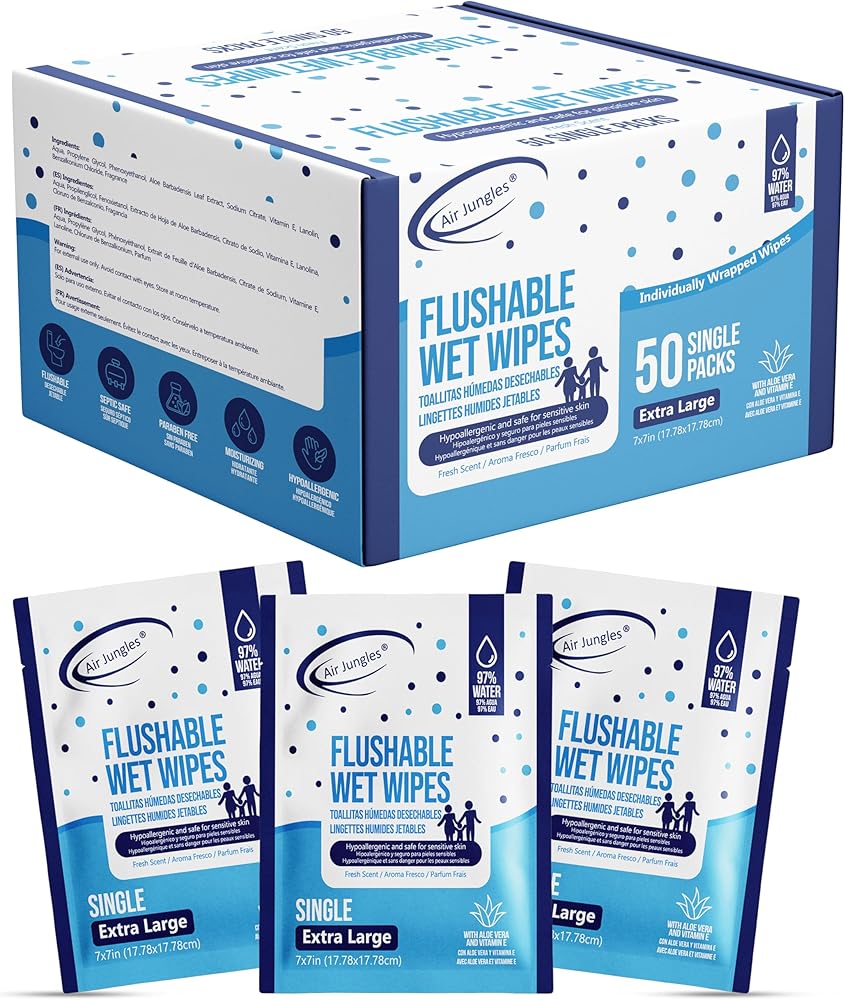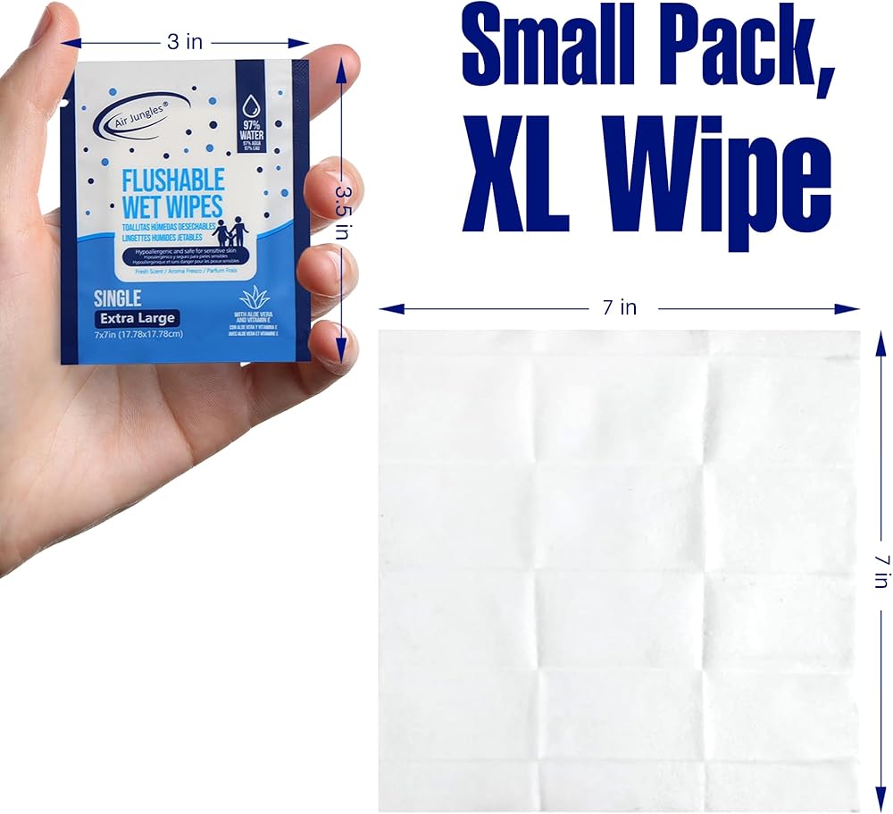 Large and Thick: Each wipe is 7inch x 7inch, larger than the average flushable wipe, ensuring a more substantial and effective cleansing experience.