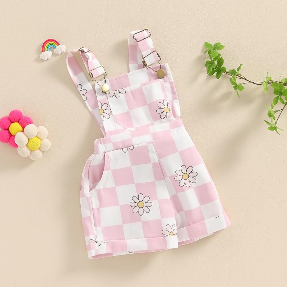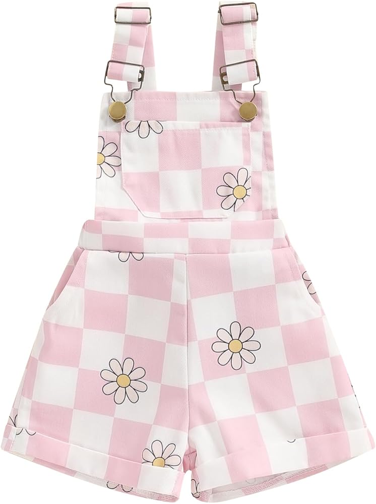 Little Girl Denim Overalls Flower/Chicken/Cow Print Jeans Strap Suspender Shorts Outfit