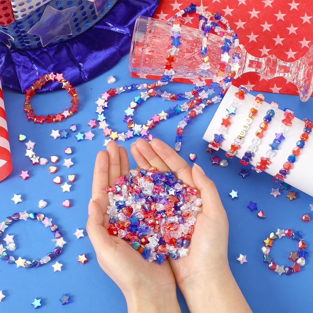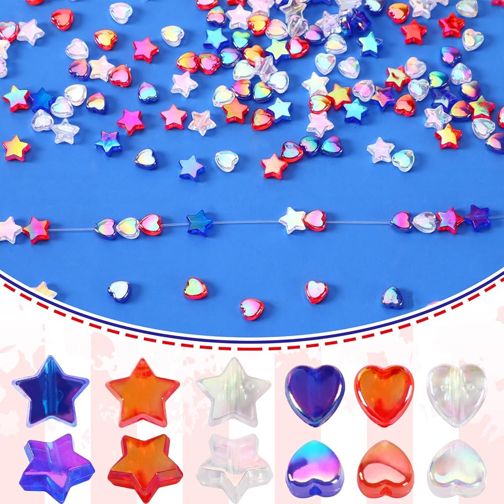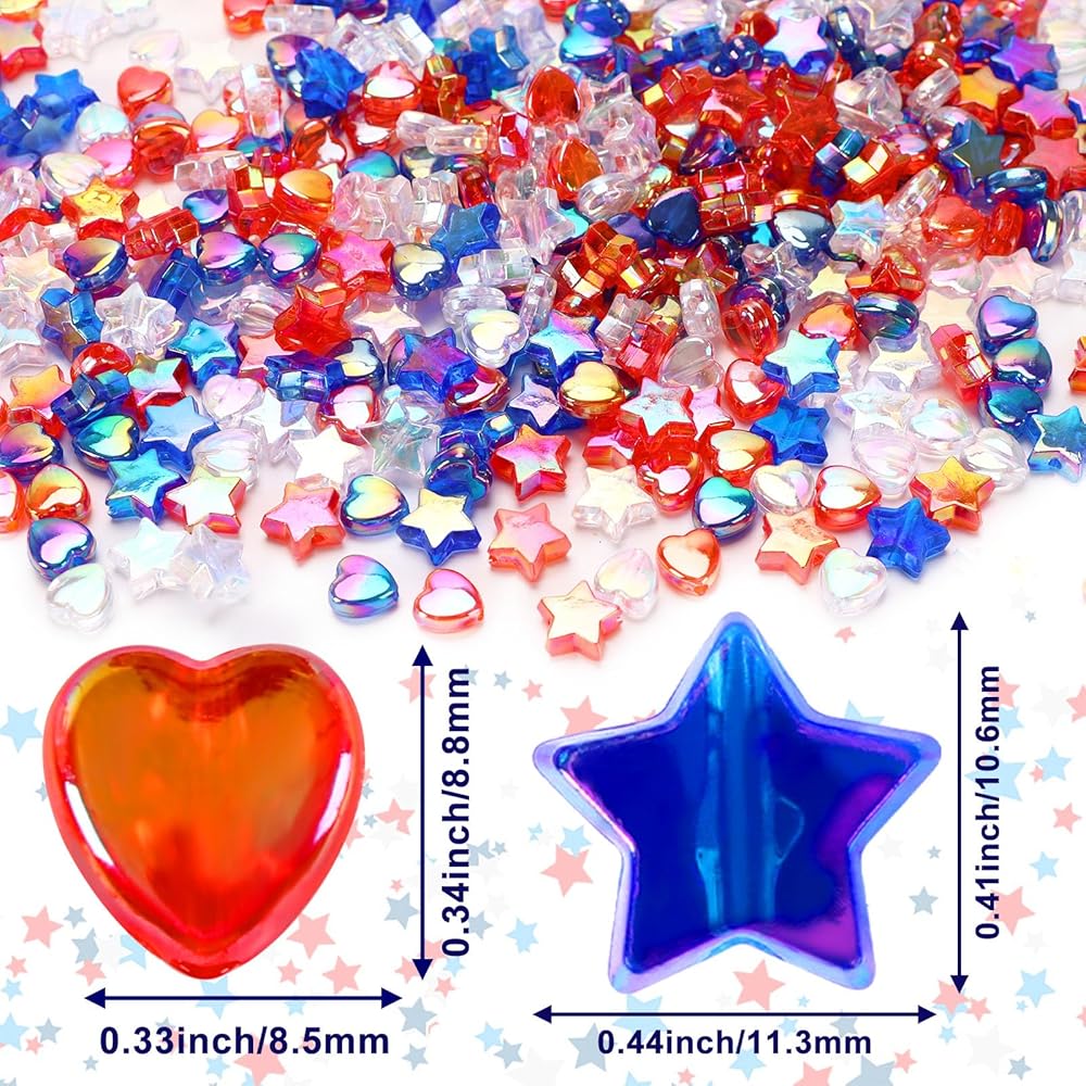 Sufficient Quantity: The 4th of July beads set includes 450 heart phantom beads and 450 five point star phantom beads ( red, blue, and transparent,150 for each style). The quantity is sufficient, whether red white blue beads is given to family and friends or for personal use, the patriotic beads can meet your needs