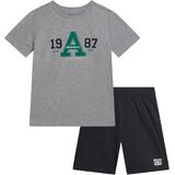 Elevate your young athlete's activewear collection with the AEROPOSTALE Boys' T-Shirt and Gym Shorts Set. Crafted with a focus on both comfort and performance, this set ensures he's ready for any activity, from sports practice to casual lounging. The short sleeve t-shirt is designed with a performance-driven approach, providing breathability and flexibility for optimal comfort during workouts. Paired with the versatile gym shorts, featuring a comfortable fit and durable construction, this ensemble offers the perfect balance of style and functionality. Embrace the AEROPOSTALE Oneness Ethos as this set promotes acceptance, empathy, and respect, fostering a sense of unity among boys who share a passion for active living. Upgrade his activewear wardrobe with the AEROPOSTALE Boys' T-Shirt and Gym Shorts Set and let him tackle every challenge with confidence and style.