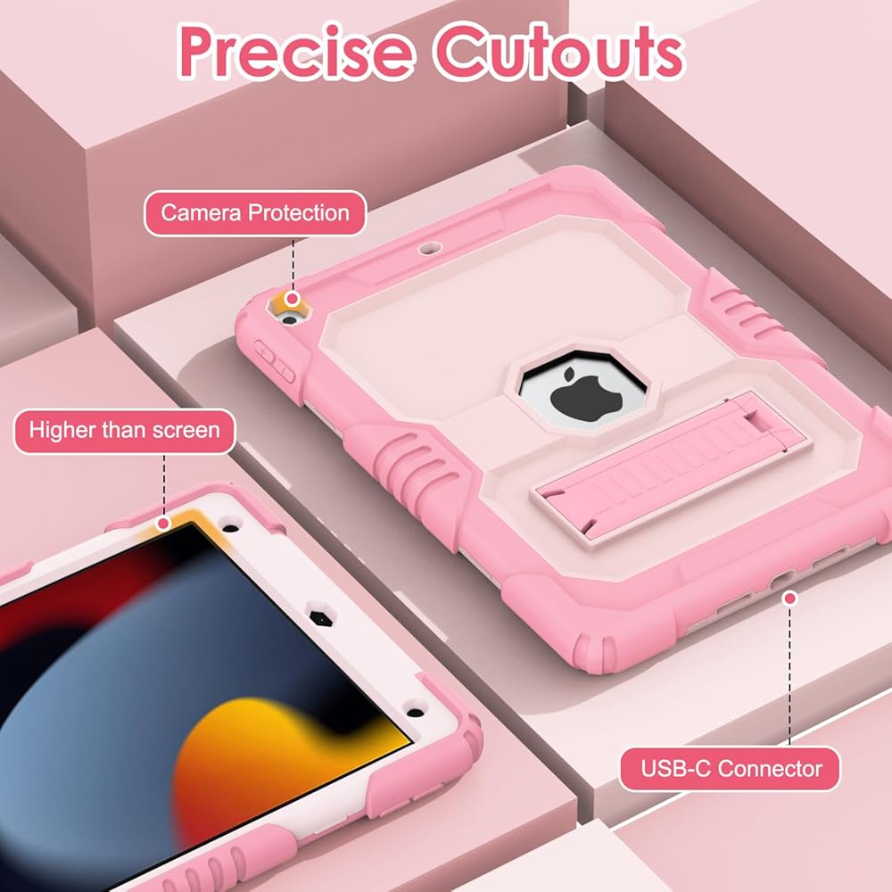 Case for ipad 9th/ 8th/ 7th Generation Case 10.2 Inch (2021/2020/2019), Heavy Duty Shockproof Rugged Protective Case for iPad 10.2 Case Built-in Multi Angle Viewing Kickstand (Pink+LP+Pink)