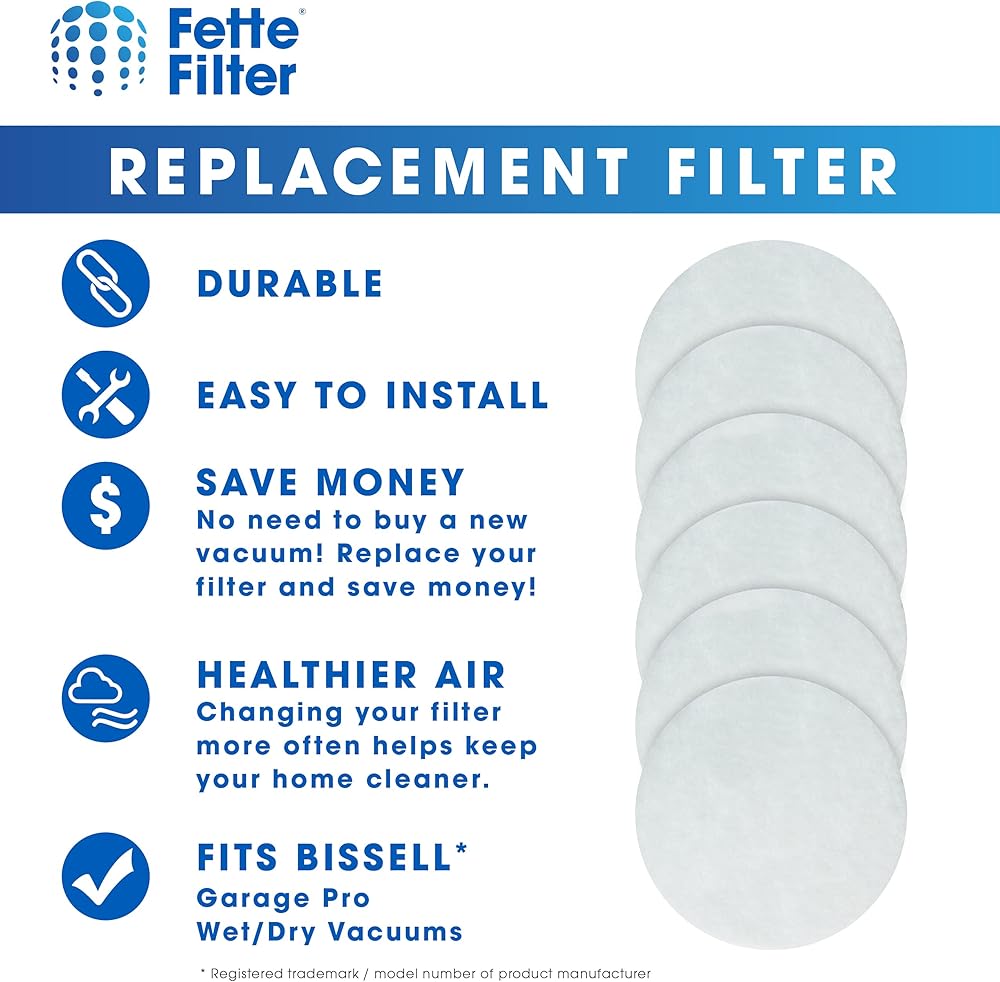 Fette Filter - Vacuum Filter Secondary Filter for Garage Pro Wet/Dry Vacs Compatible with Bissell Part # Replaces Part # 2030165, 203-0165 for Models 18P0, 18P01, 18P03,18P04, 18P05, 18P06, 18P0M, 18P0P, 43Z3, 43Z31, 43Z38