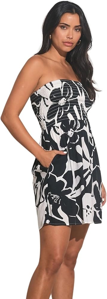 Embrace the ease of summer with this strapless floral print sundress from ELAN. Its breezy silhouette is perfect for balmy days and sultry evenings alike. Crafted from lightweight fabric, this dress promises comfort and effortless style. The elasticized bodice hugs your shape while ensuring a secure fit. The all-over pattern evokes a sense of romantic whimsy, making it an ideal choice for garden parties or seaside strolls. Flowing to just the right length, it allows for versatility in your footwear choices, be it sandals for a casual look or heels for a touch of elegance. Step into the season with this sundress that's as ready for a picnic in the park as it is for a sun-drenched vacation.