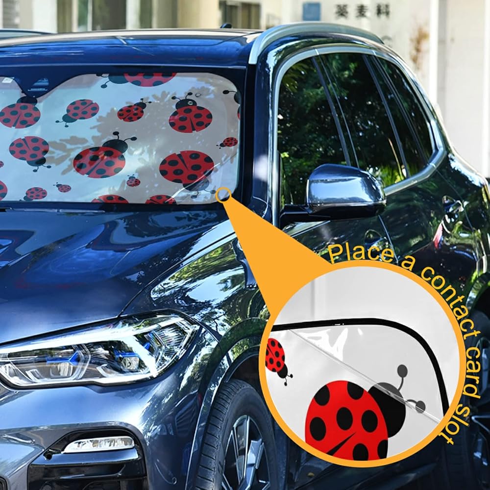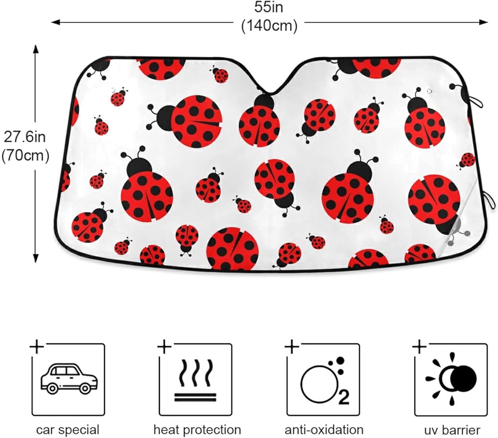 UNIVERSAL FIT: Size 55*27.6 inch. Fits most car front windshields.large area sucker, not easy to fall off, can be reused after washing.foldable, also fitted with straps that allow you to conveniently fold it for easy storage.sun shade for car windshield is easy to pops out and folds back in seconds making.when you don't need it, just fold it and store it in a pouch. And can be stored in the door pocket of the car.