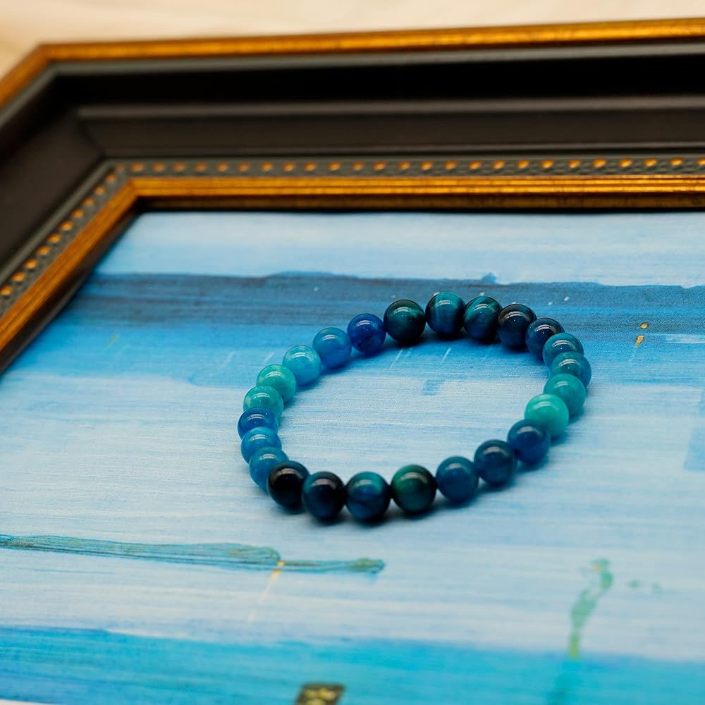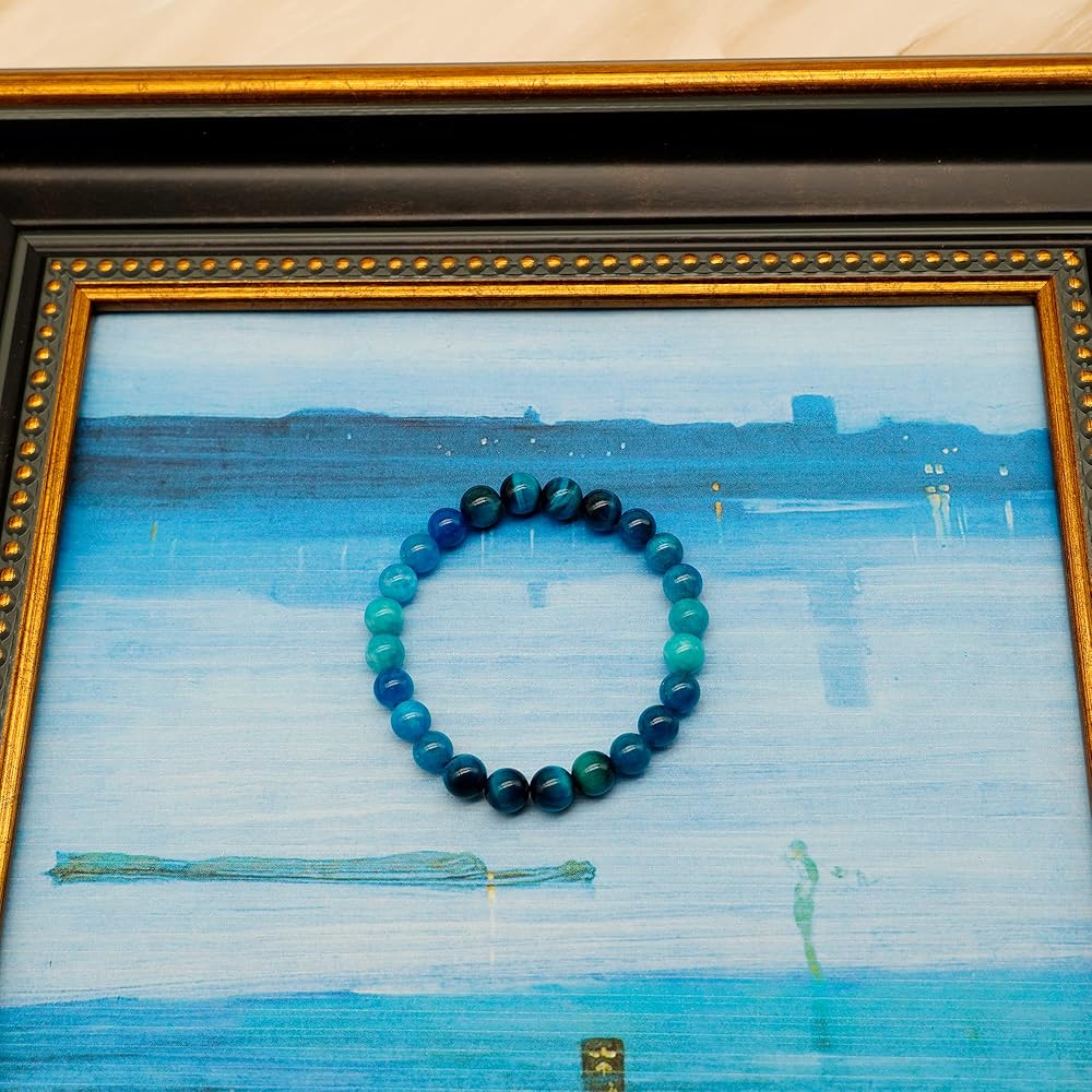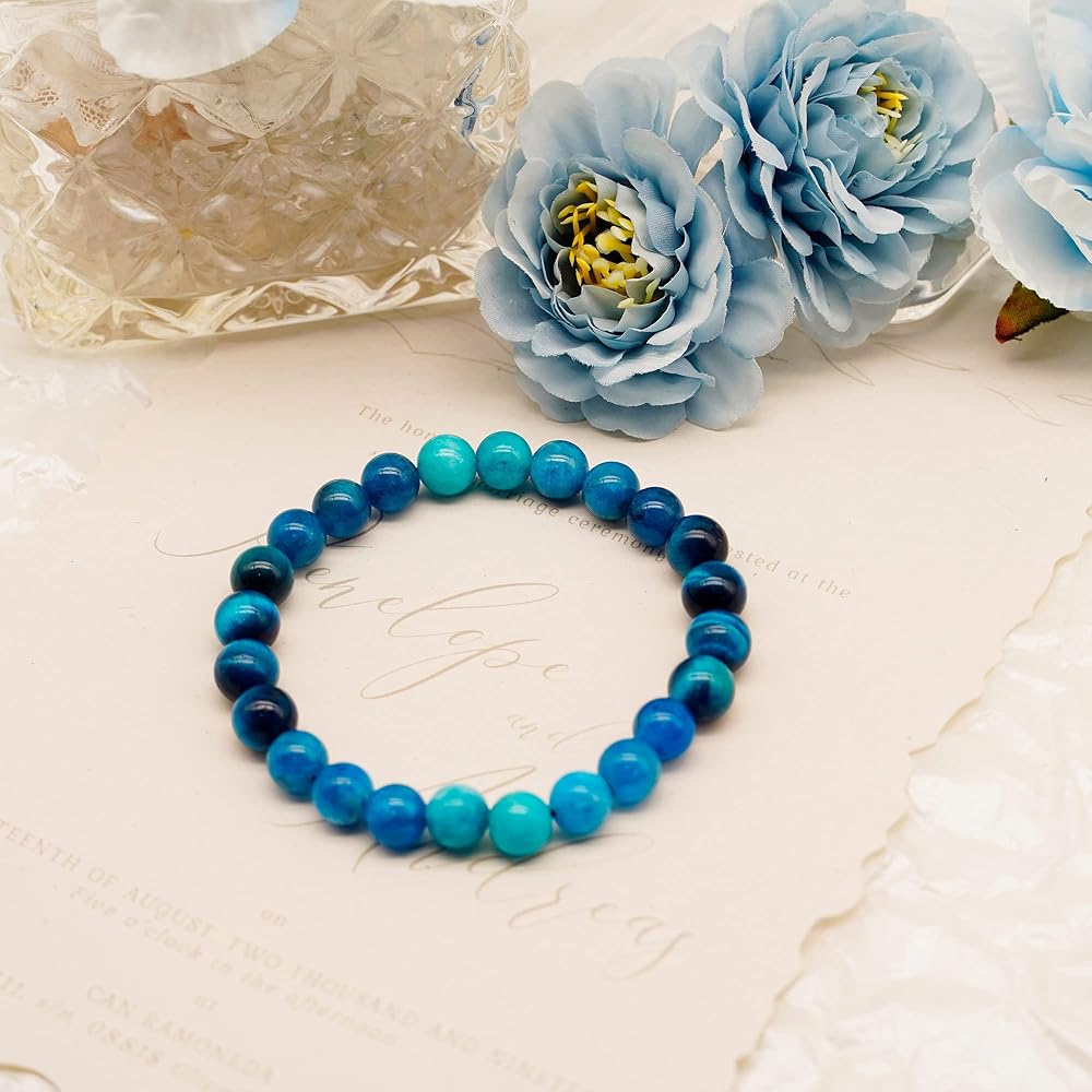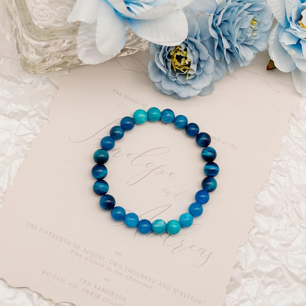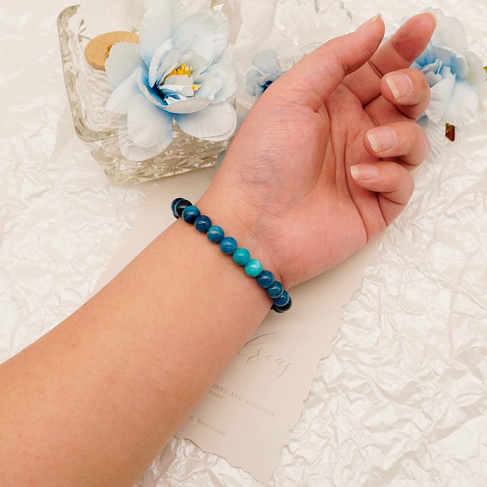 [Artistic Design]: This crystal bracelet is inspired by the beautiful and harmonious color combinations of famous paintings. We used natural apatite, tiger's eye and amazonite to recreate the blue gradient of James McNeill Whistler's Nocturne, Blue and Silver Chelsea. This bracelet will make you look elegant, calm and noble when you wear it