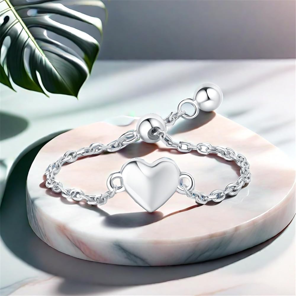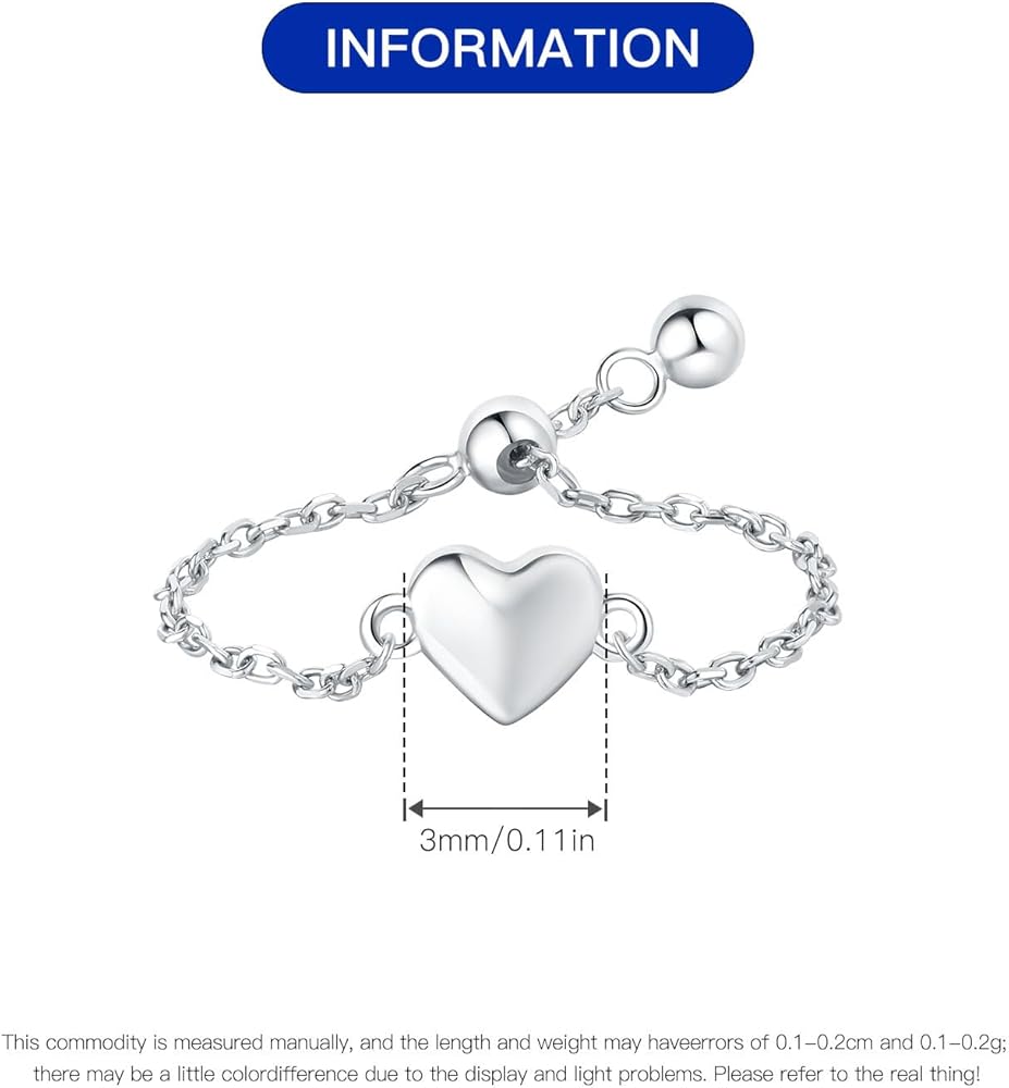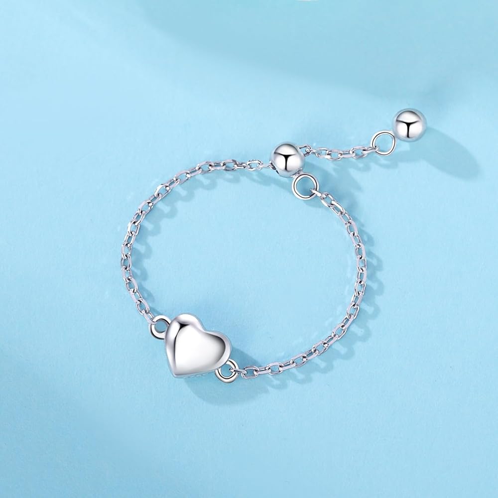 ColorRubber Stopper Adjustable Chain Length Size Heart Ring