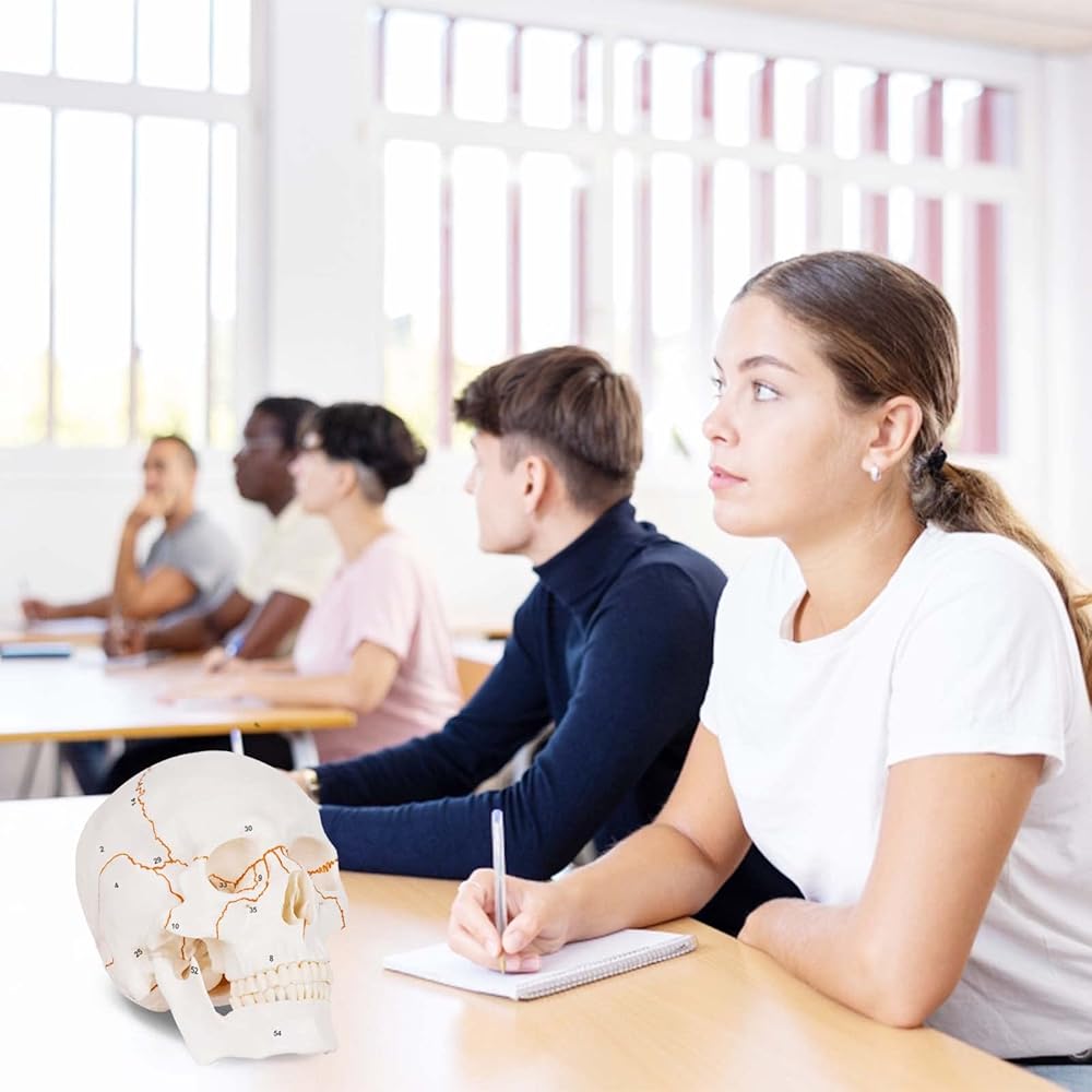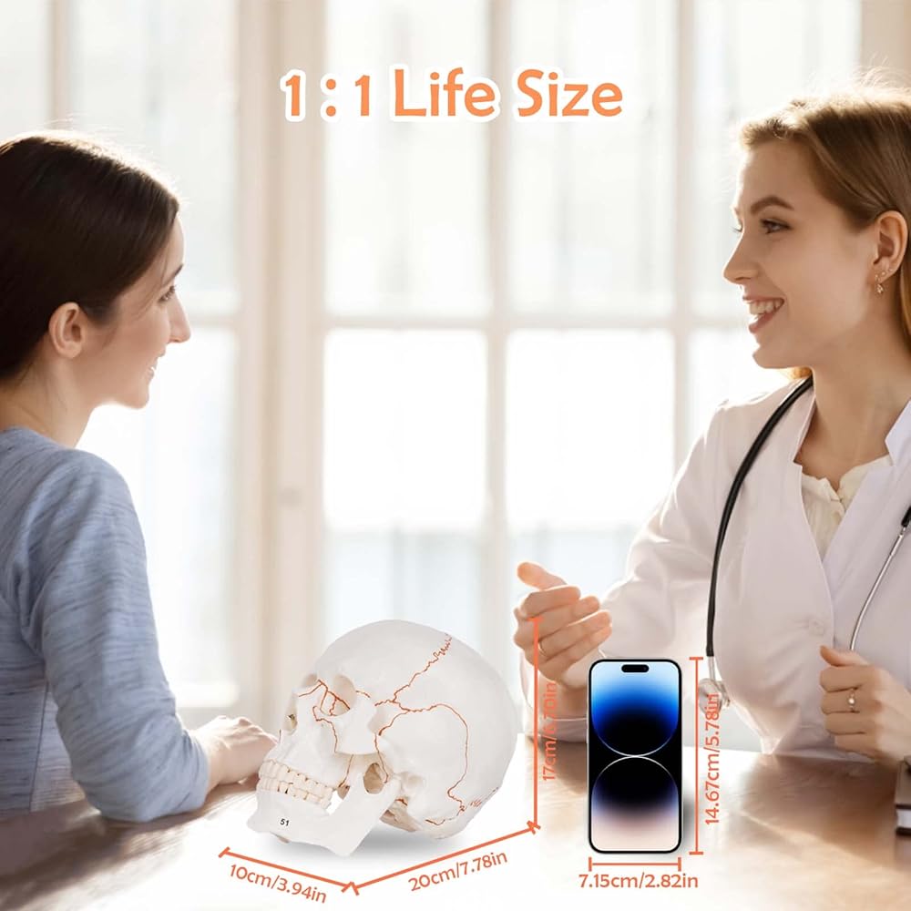 Numbered Human Skull Model,Life Size Anatomical Skull Model with Removable Teeth and Replacement Teeth,Removable Skull Cap,Articulated Mandible,Orange Sutures,for Educational and Medical Use.
