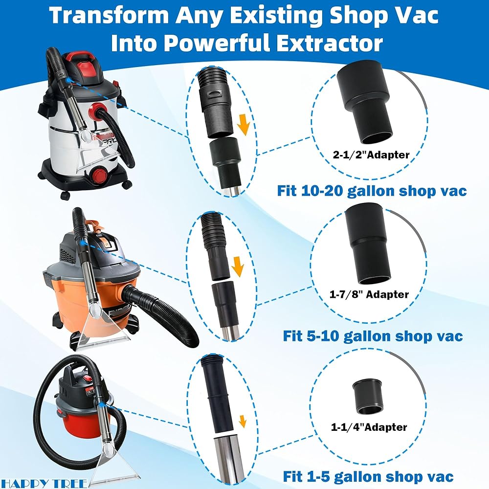 Happy Tree Universal Fit All Brands' Shop Vacs with 2-1/2"&1-7/8"&1-1/4" Adapter Clear Extractor Accessory for Upholstery & Carpet Cleaning & Car Detailing, Shop Vac Extractor Attachment Hose Kit