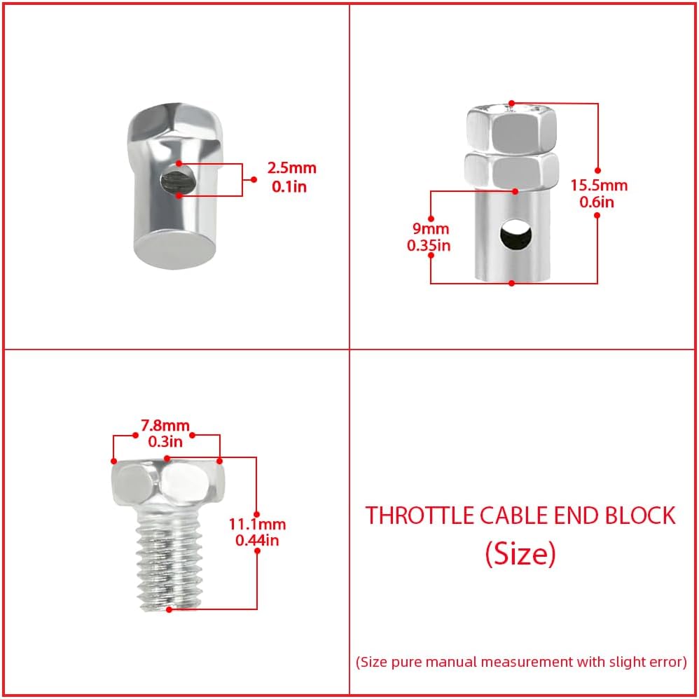 【Wide Application】Throttle cable clamps are suitable for a wide range of applications. Used on control cables, push-pull cables and throttle cables for power equipment. Also fit for diverse vehicle and household projects, like go-karts, bicycles, motorcycles, scooters, motorized bikes, jet skis, garden tractors, lawn mowers, etc.
