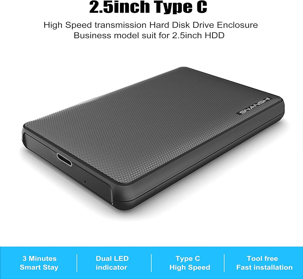 SNANSHI 2.5 inch Hard Drive Enclosure - USB C External Hard Drive Enclosure for 2.5" SATA SSD HDD SATA to USB C Adapter SSD Enclosure USB 3.1 Gen 2 Support UASP SATA III
