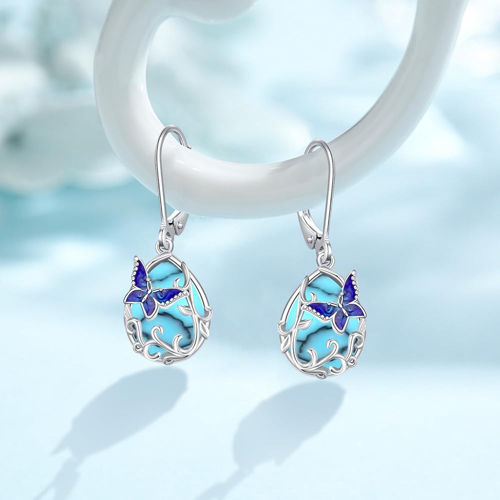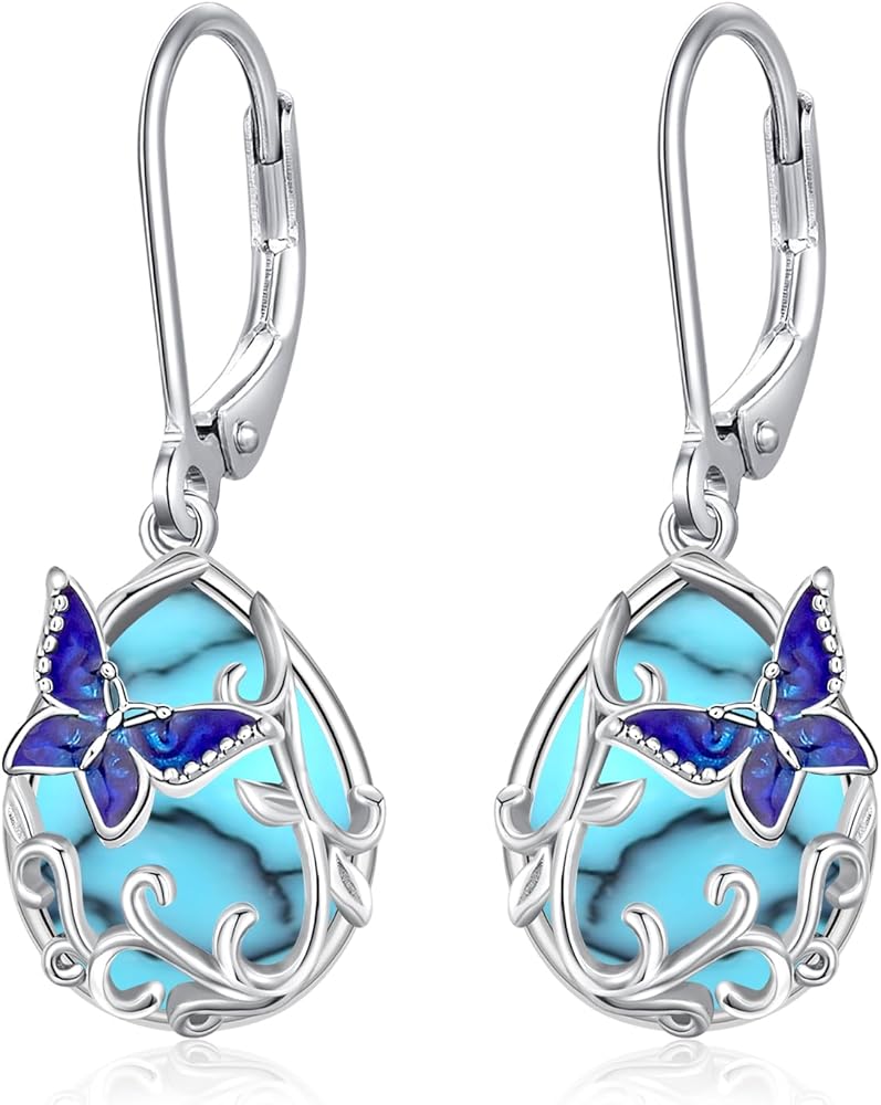 • Butterfly Earrings for Women Material: The butterfly leverback earrings made of 925 sterling silver and moonstone, Hypoallergenic for sensitive skin,Exquisite workmanship in every detail part.