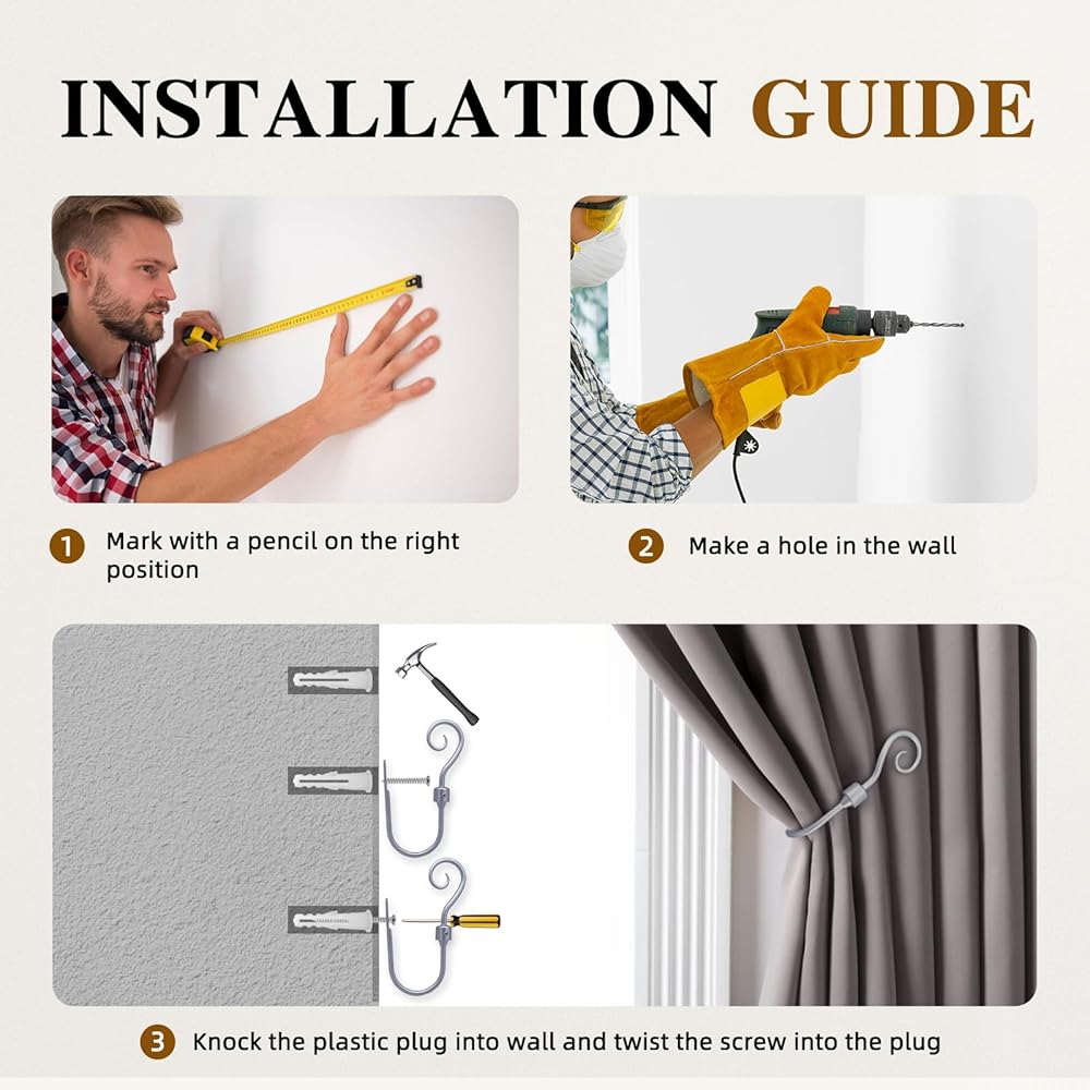 【Multiple Functions】:This hook is not only suitable for decorating curtains, but also perfect for hanging picture frames, clothes, backpacks, and beautiful decorative flower baskets, etc. It will make your home more neat and elegant. It's truly a worthwhile choice!