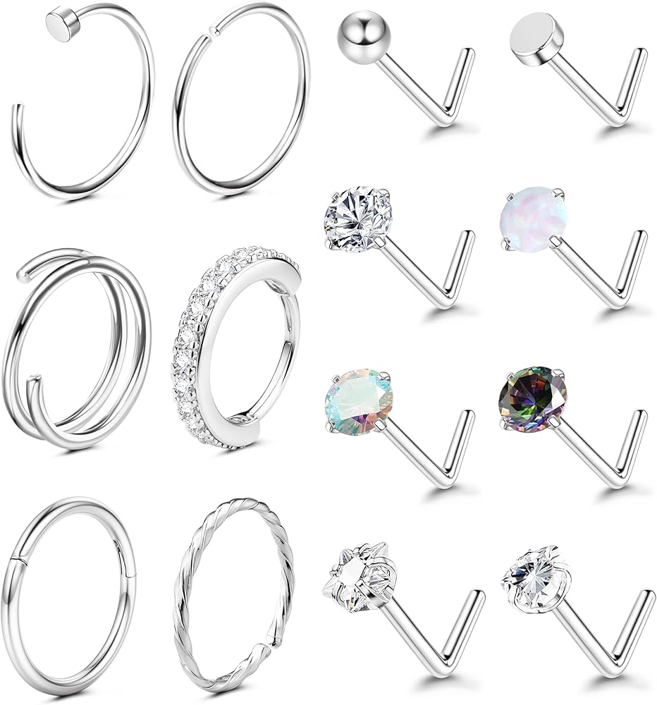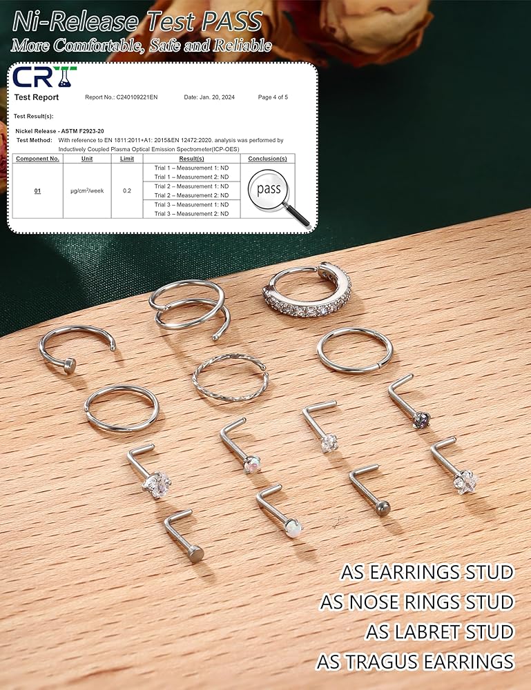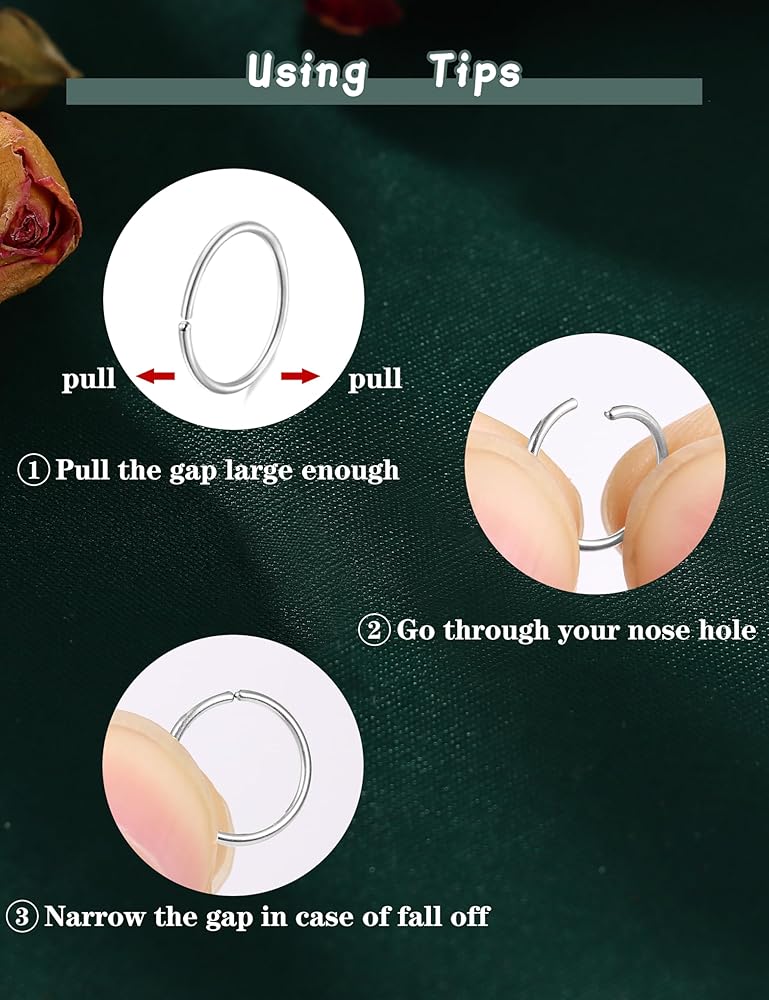 Versatile Usage and Piercing Options: Wear these nose rings individually or customize according to your style. Suitable for various piercings including nose, lip, cartilage, septum piercings, and more body piercing jewelry