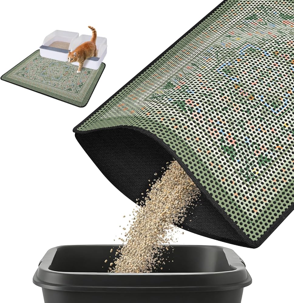 Double Layer Design: The dual-layer design of our litter mat helps to effectively prevent litter from scattering around your home, providing a tidy and hygienic environment for both you and your cat.