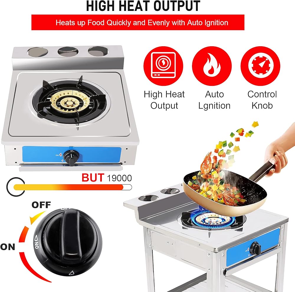 【HIGH HEAT OUTPUT】-Portable Gas Stove Powered 19,000 BTU/hr,Heats up Food Quickly and Evenly with Auto Ignition, no Need for Cumbersome Start-up and Heats up Quickly Features a Control Knob to Conveniently Set