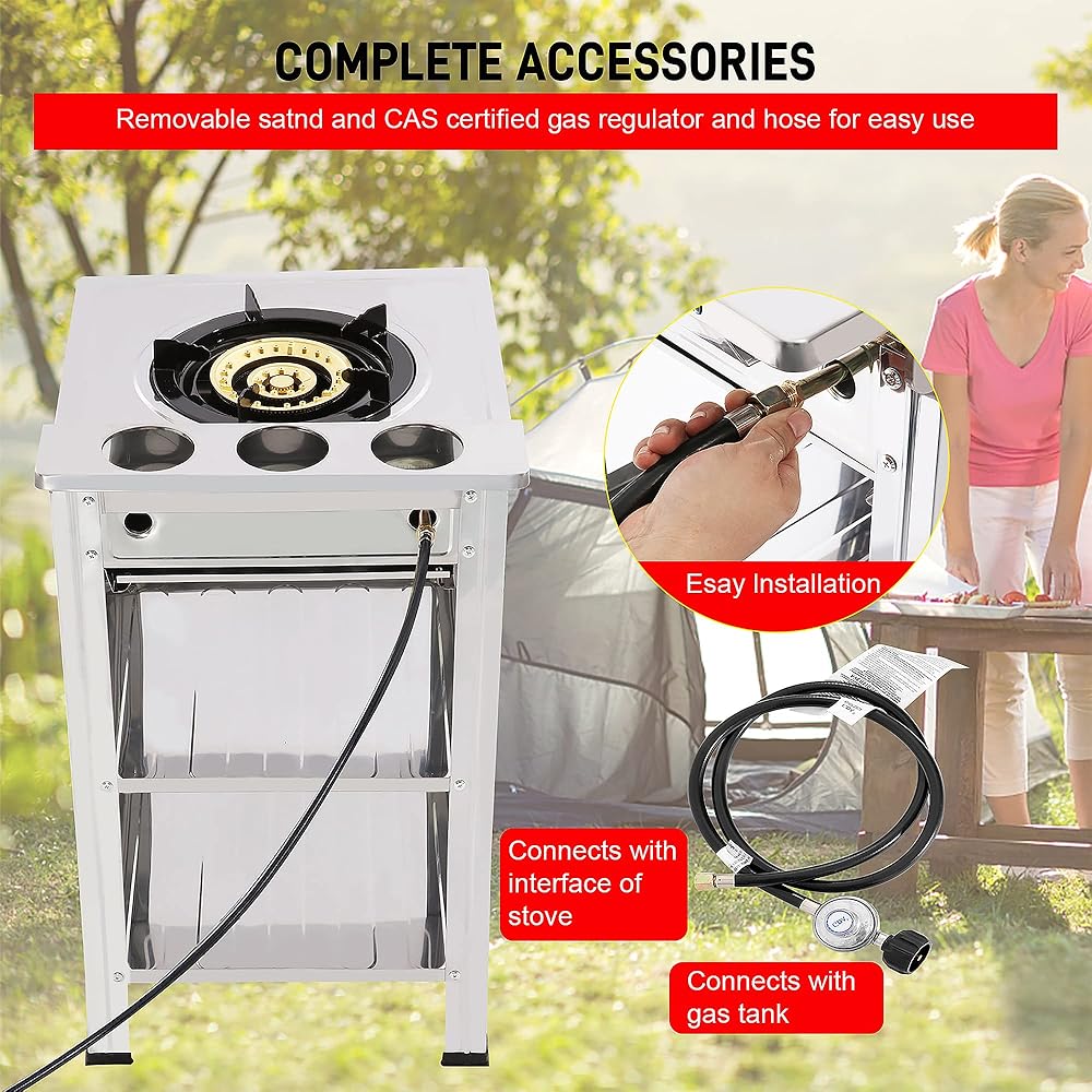 【COMPLETE ACCESSORIES】-1 burner gas stove with removable stand and CSA certified gas regulator and hose for easy use