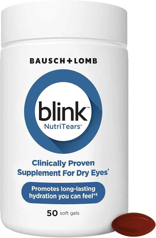 Blink NutriTears Clinically Proven Supplement for Dry Eyes, Eye Care with Lutein & Zeaxanthin and Vitamin D to Hydrate Eyes from Within for Long-Lasting Relief, 50 Softgels