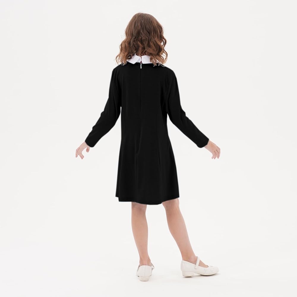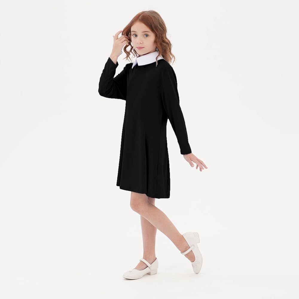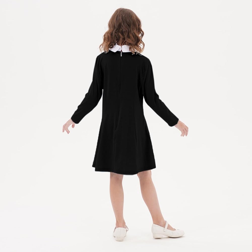 Girls Casual Dress Long Sleeve Vintage Peter Pan Collar T-Shirt Dresses Age 3-12 Years