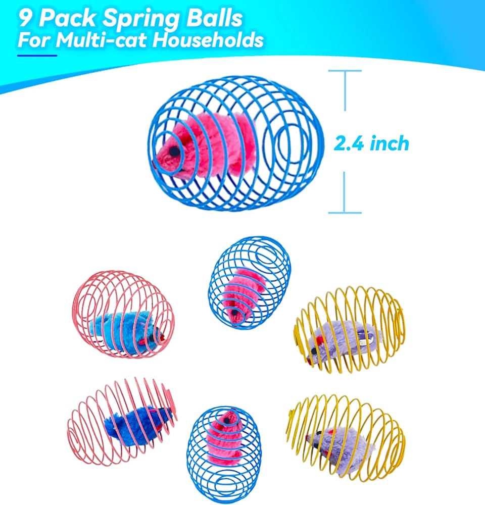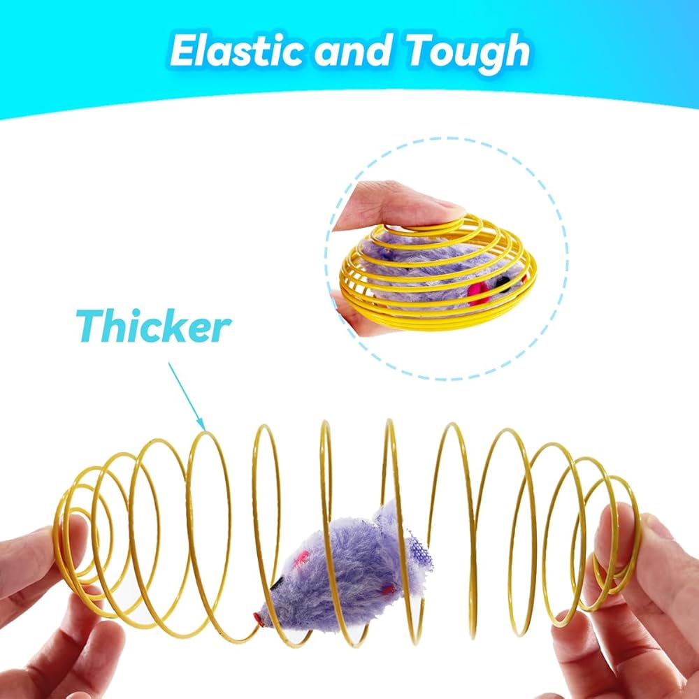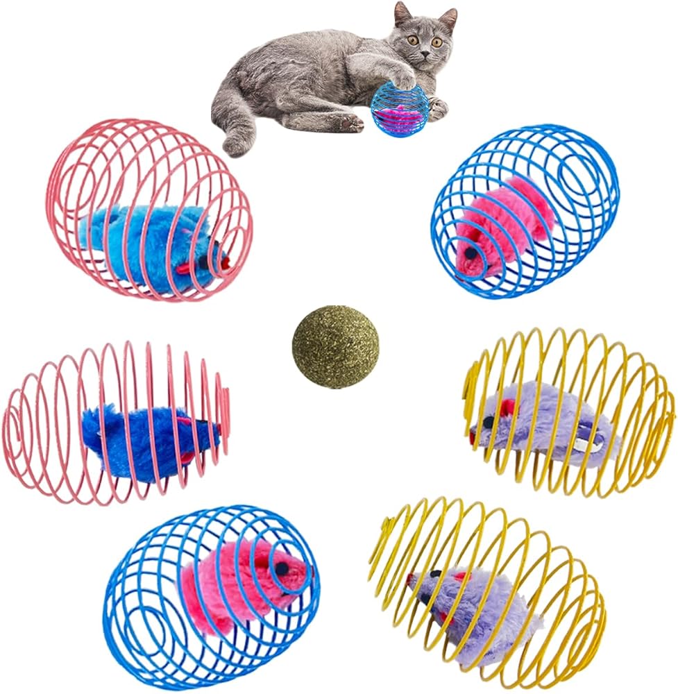 Cat Spring Toys 6 Packs Cat Spring Balls with 1 Pack Catnip Ball for Indoor Cats Metal Cage Balls with Mice, Interactive Cat Toys Cat Balls Mouse Toys, for All Breeds