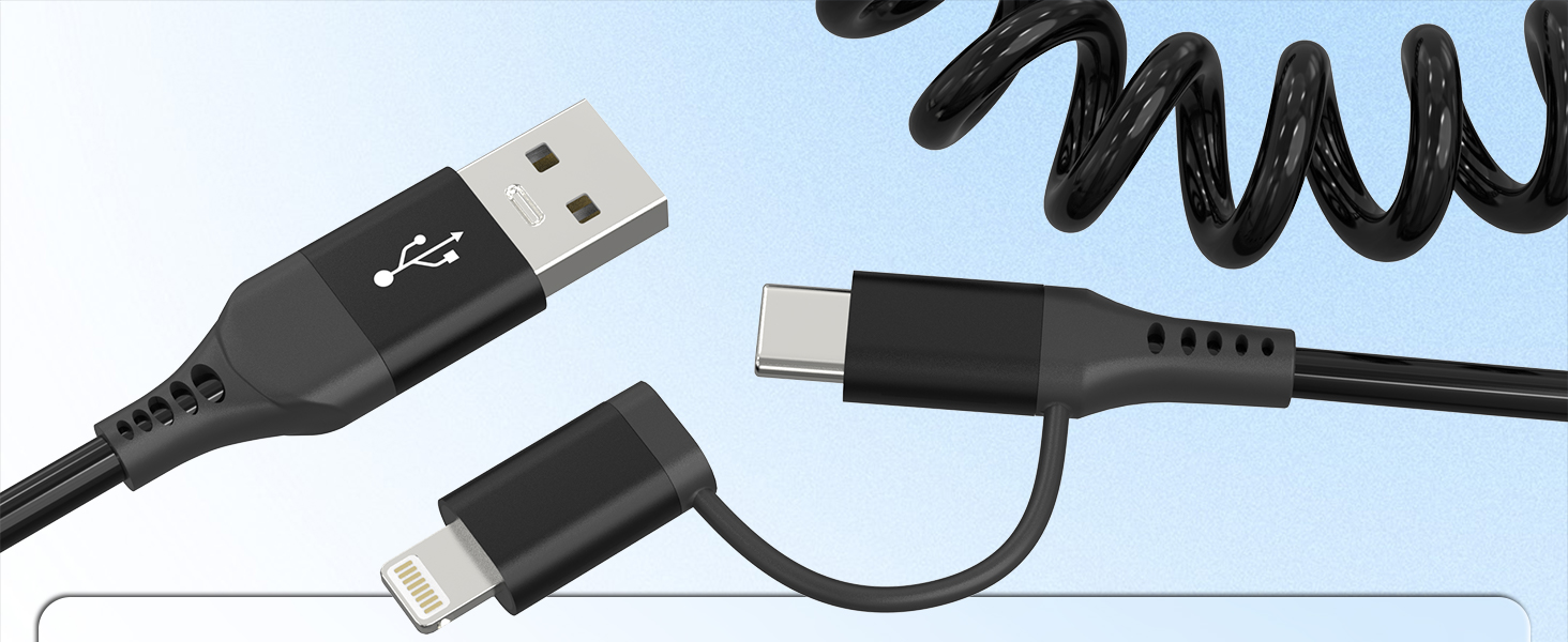 【Durable, Anti-Tangle & Portable】You will get 1pcs coiled USB A to USB C and Lightning Cable. The coil design of the cable prevents tangles and knots. If you have any questions about the product, please contact us without any doubt.