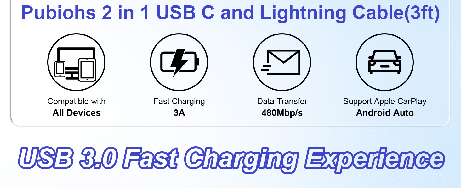 🚀 【3A Fast Charging & Data Transfer】This USB to USB-C and Lightning charger cable offers fast, efficient charging whenever and wherever. It has adopted USB 3.0 technology and thickened copper core, charging and data transfer faster, iPhone 15 charge 65% in 30 minutes and transfer 1G large files in 25 seconds, easy surpass the official.