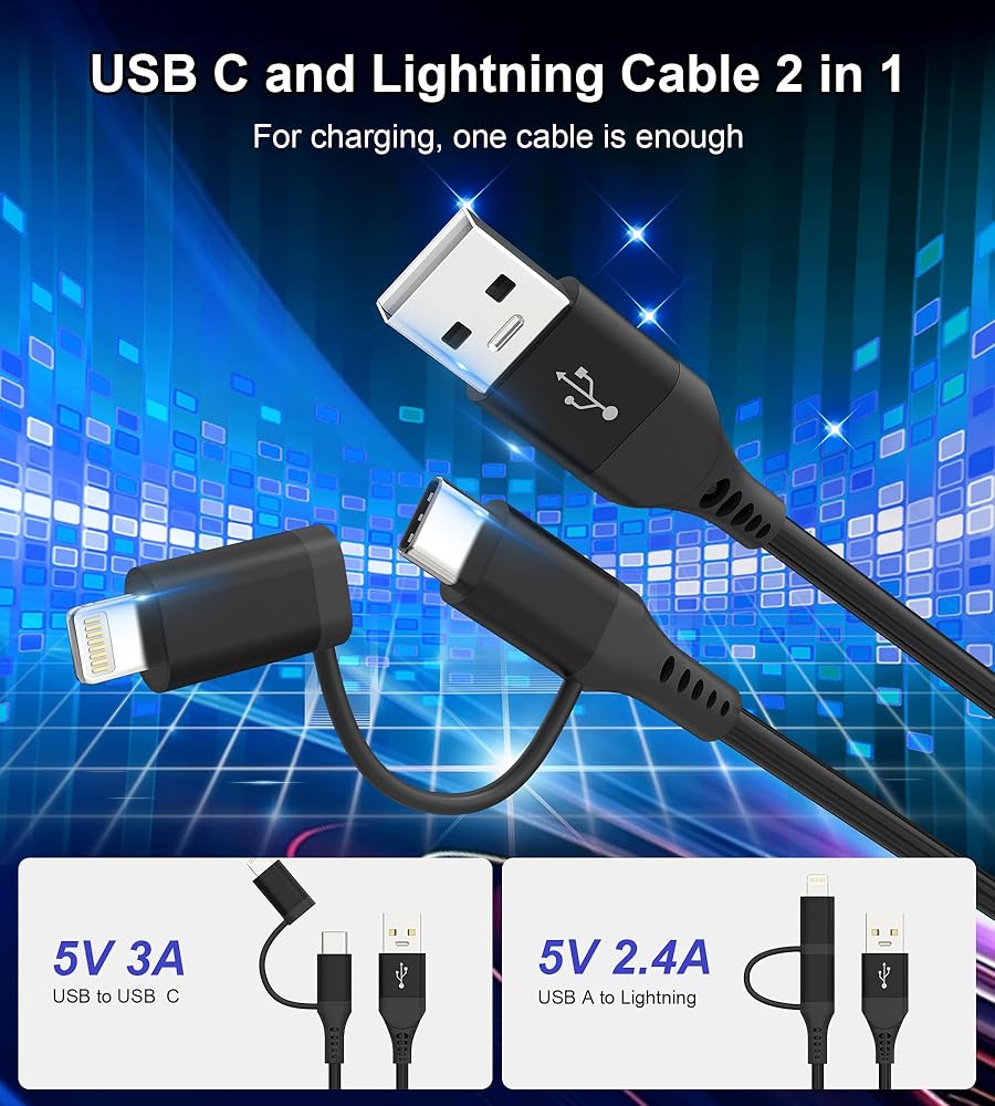 👍 【USB C Cable Lightning Cable 2 in 1】The multi charging cable was designed with the idea of simplifying your life. It combines USB to USB C and USB to Lightning in one cable. Best for you if you have the latest iPhone 15 and previous iPhone Lightning devices or Android phones. No need to carry multiple cables for different devices.