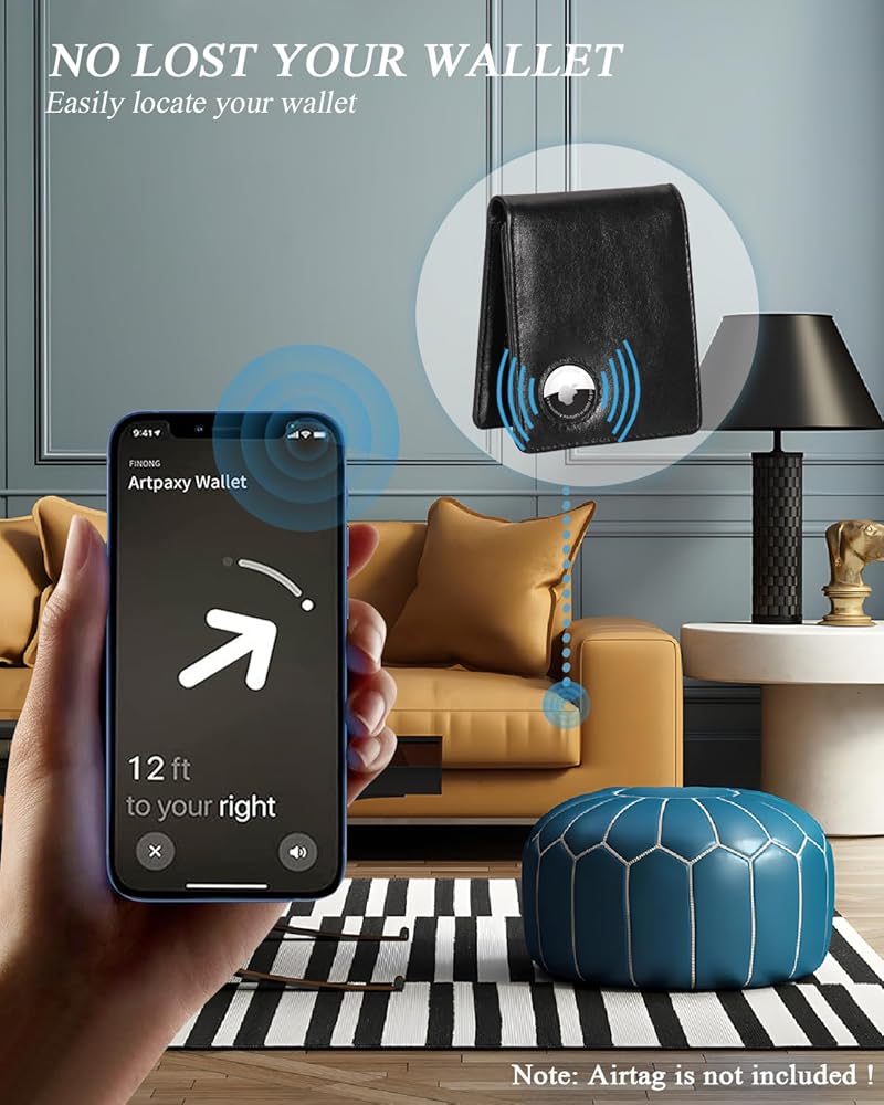 ANTI LOST WALLET - This leather men's wallet has an integrated holder designed for the Apple AirTag. Put your AirTag into the built-in holder, then you can track your wallet via Find My APP and never lose it again! (AirTag not included)